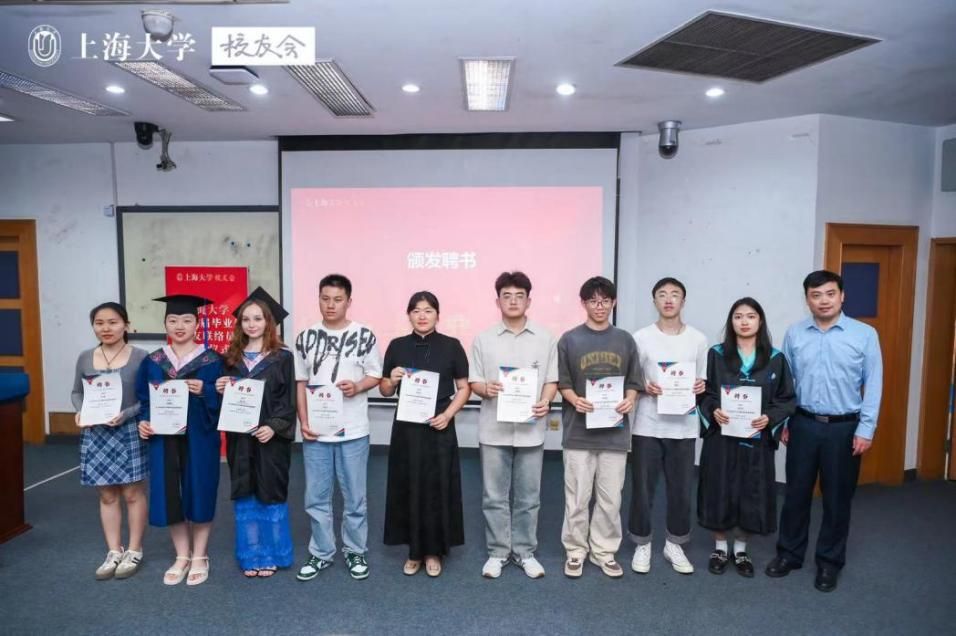 6月22日下午,365完美体育2024届毕业生校友联络员聘任仪式在宝山校区J楼102室举行。校党委副书记、副校长胡大伟出席活动,并为100余位来自各个学院的毕业生校友联络员代表颁发聘书。毕业生校友联络员们现场宣誓,许下铮铮誓言,将义不容辞为校友与母校服务,不负重托、使命必达。未来,他们将化身为传承上大精神的“使者”、联络校友与母校的“桥梁”、促进共同发展的“纽带”,成为促进校友与母校共同发展的又一批“生力军”。