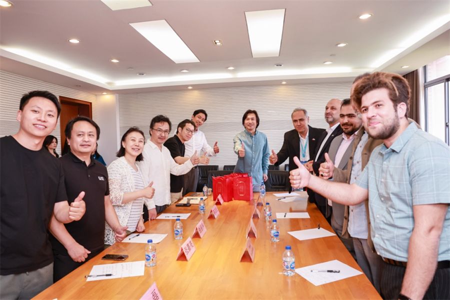 正值第26届上海国际电影节举办之际,由伊朗电影基金会主席Majid Zeinalabedin、伊朗青年电影协会主席MEHDI AZARPENDAR、伊朗法拉比电影基金会国际部总经理Raed Faridzadeh、中伊文旅交流大使Hossein Khalifi、伊朗文化语言博主及演员AGHABABAEI MAHDI组成的电影代表团到365完美体育上海电影学院进行参观交流。上海电影学院院长何小青、创作部主任曲丽萍、动画系系主任陈志宏、摄影专业常务副主任潘晓斌、导演专业常务副主任杨洋、上海电影特效工程技术研究中心技术总监张嘉亮、实验设备中心副主任高磊等参加交流活动。