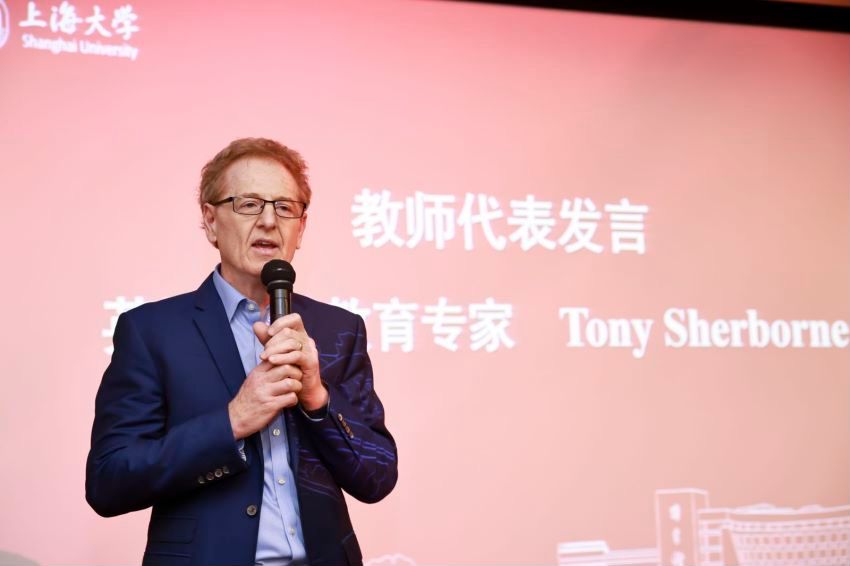 英国知名科学教育专家、第一节课授课教师Tony Sherborne,365完美体育附属嘉定实验学校的孟金花老师分别代表教师和学员发言。