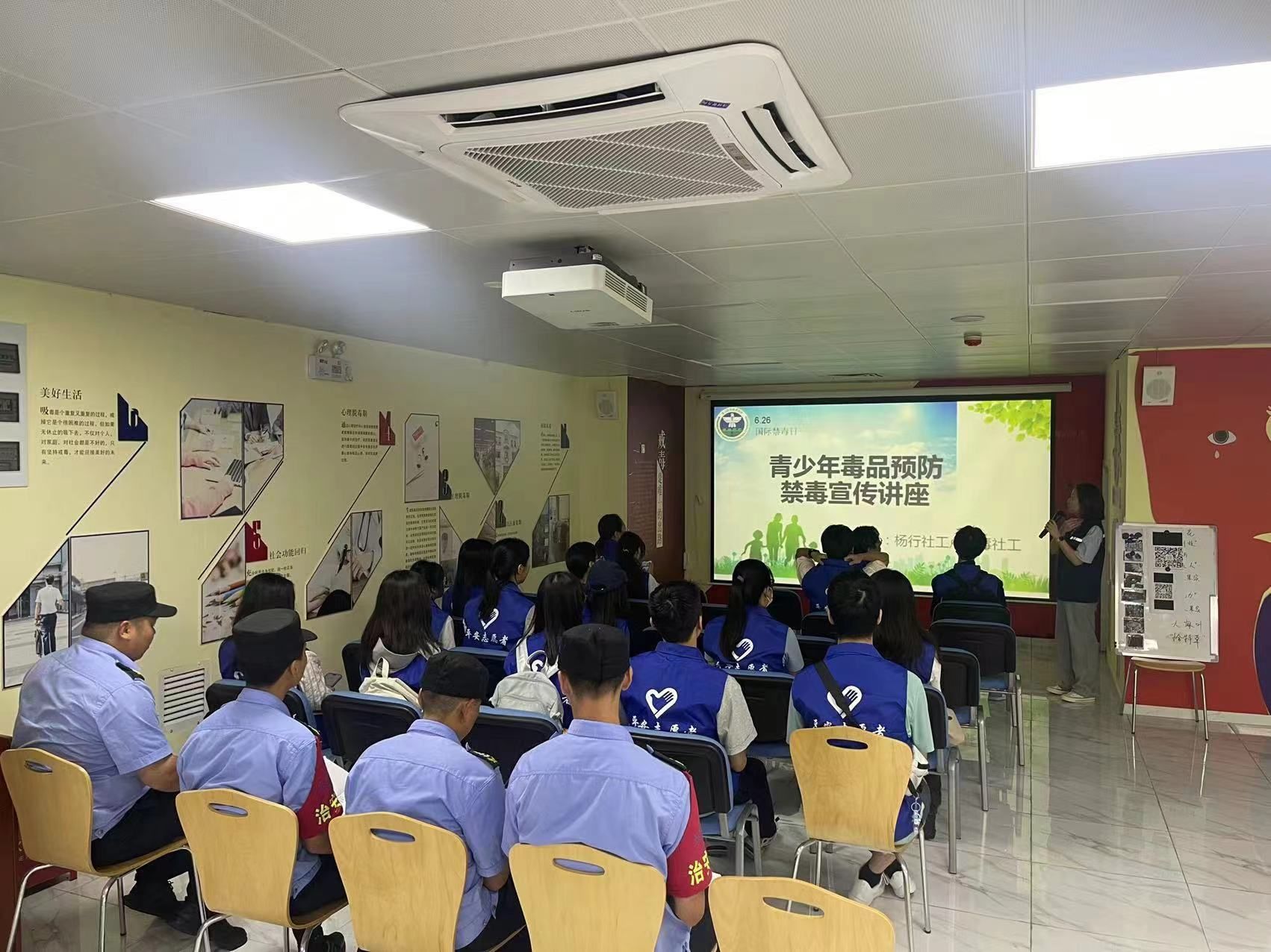 6月26日是国际禁毒日,我校大学生平安志愿者在保卫处副处长王国正、王天炼、指导老师朱佳贤、施安的带领下,分别走进宝山区杨行镇综合治理中心和静安区大宁路街道参加全民禁毒宣传月活动。此次国际禁毒日的联合宣传活动,不仅增强了社区居民特别是青少年的禁毒意识,也为构建无毒社区、保护青少年健康成长营造了良好的社会环境,同时也体现了大学生平安志愿者的责任与担当。