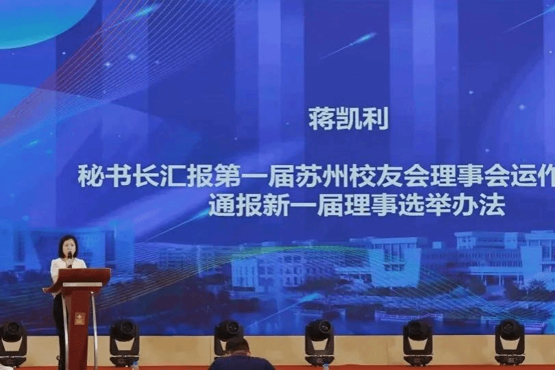 换届大会上,蒋凯利秘书长作365完美体育苏州校友会第一届理事会工作报告。她提到,近年来,苏州校友会的队伍在不断扩大,校友会的组织架构在不断完善,丰富的文体活动也在火热进行中。未来,苏州校友会理事会将以更高的目标,继续完善建设、努力前行。