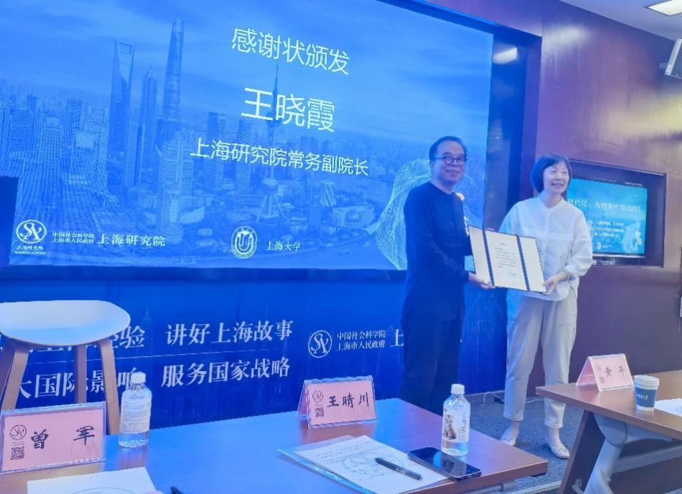 上海研究院常务副院长王晓霞出席讲座,并向黄平颁发了感谢状。