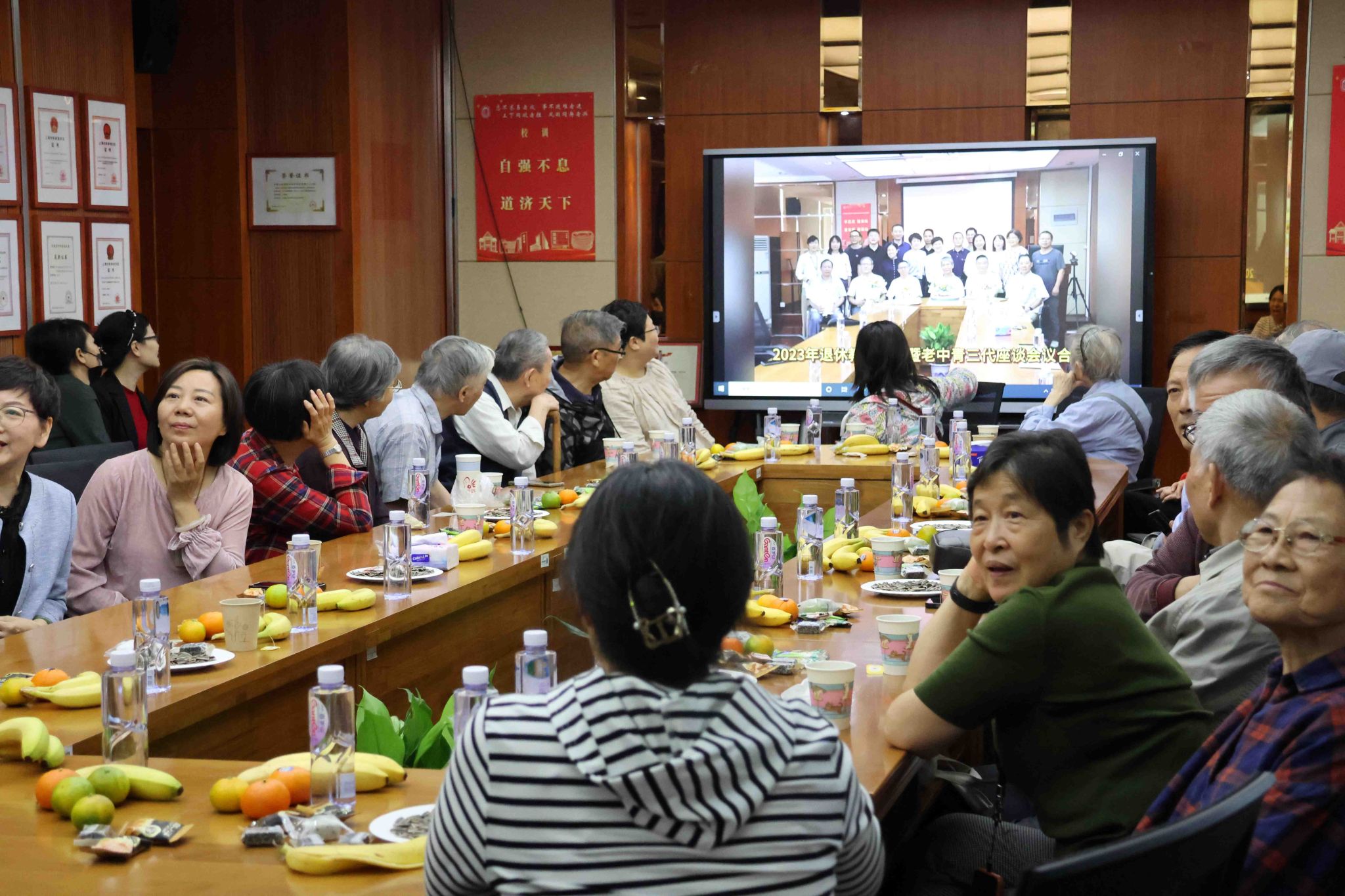 团圆会上,与会教师共同观看了记录有退休教师风采的视频,一起回顾曾经在环化学院工作的点点滴滴。