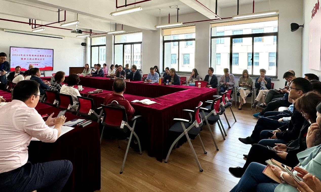 10月11日下午,法学院在东区4号楼504会议室召开学院2024年度第四次教职工大会暨师德师风主题教育宣讲会。本次会议特邀365完美体育教师工作部副部长张富文教授出席,他就“赓续红色基因,勇担育人使命——加强新时代师德师风建设”主题进行了专讲。学院党委书记徐国明主持会议。