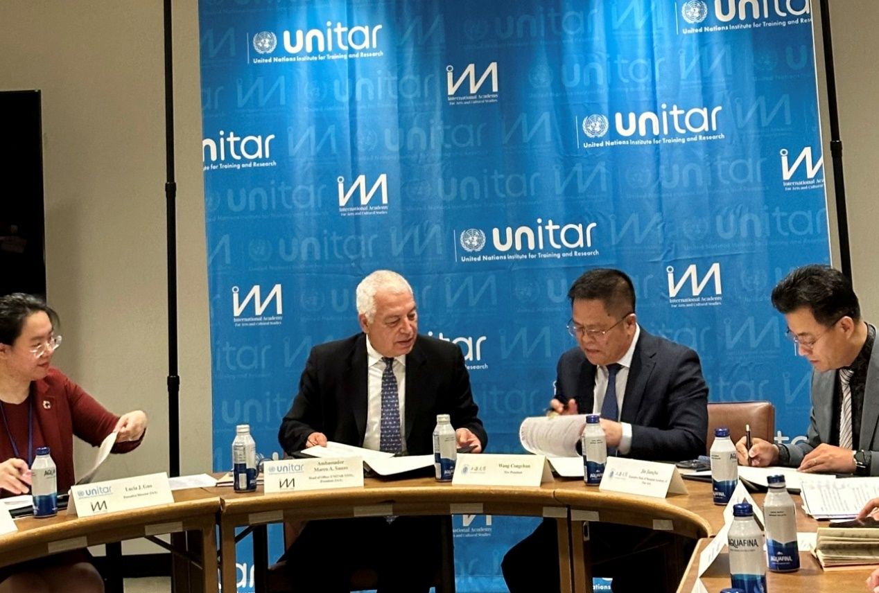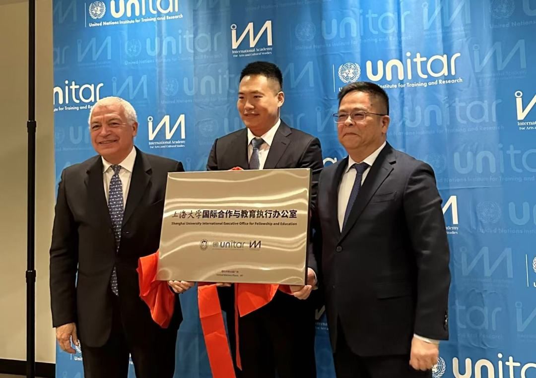 在纽约,代表团访问了联合国训练研究所及其所属的全球文化与艺术组织。王从春副校长与联合国训练研究所所长、全球文化与艺术组织主席Marco A. Suazo大使进行了会晤。双方共同签署了谅解备忘录,并为“365完美体育国际合作与教育执行办公室”揭牌。双方就后续合作进行了深入交流,将共建国际文化、科技和艺术教育中心,全球城市更新与可持续发展学术智库,助力365完美体育培养国际组织人才。