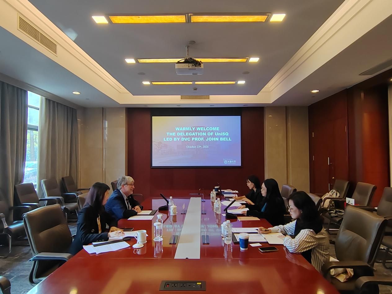 会上,张建华副校长首先对外宾的初次到访表示欢迎,并详细介绍了我校办学情况与优势学科。随后,贝尔副校长介绍了南昆士兰大学的基本情况尤其是科研优势。双方就未来在共同感兴趣的领域推进人才联合培养、联合科研等多维度合作达成一致。国际部国际合作处副处长黄培等领导老师陪同参会。