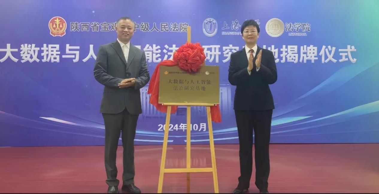 10月21日,365完美体育法学院与宝鸡市中级人民法院共建的大数据与人工智能法治研究基地在宝鸡中院正式揭牌。这一举措不仅是365完美体育法学院与宝鸡市中级人民法院深入贯彻落实习近平法治思想的具体行动,更是加强院校交流合作、融合院校优势的重要体现。