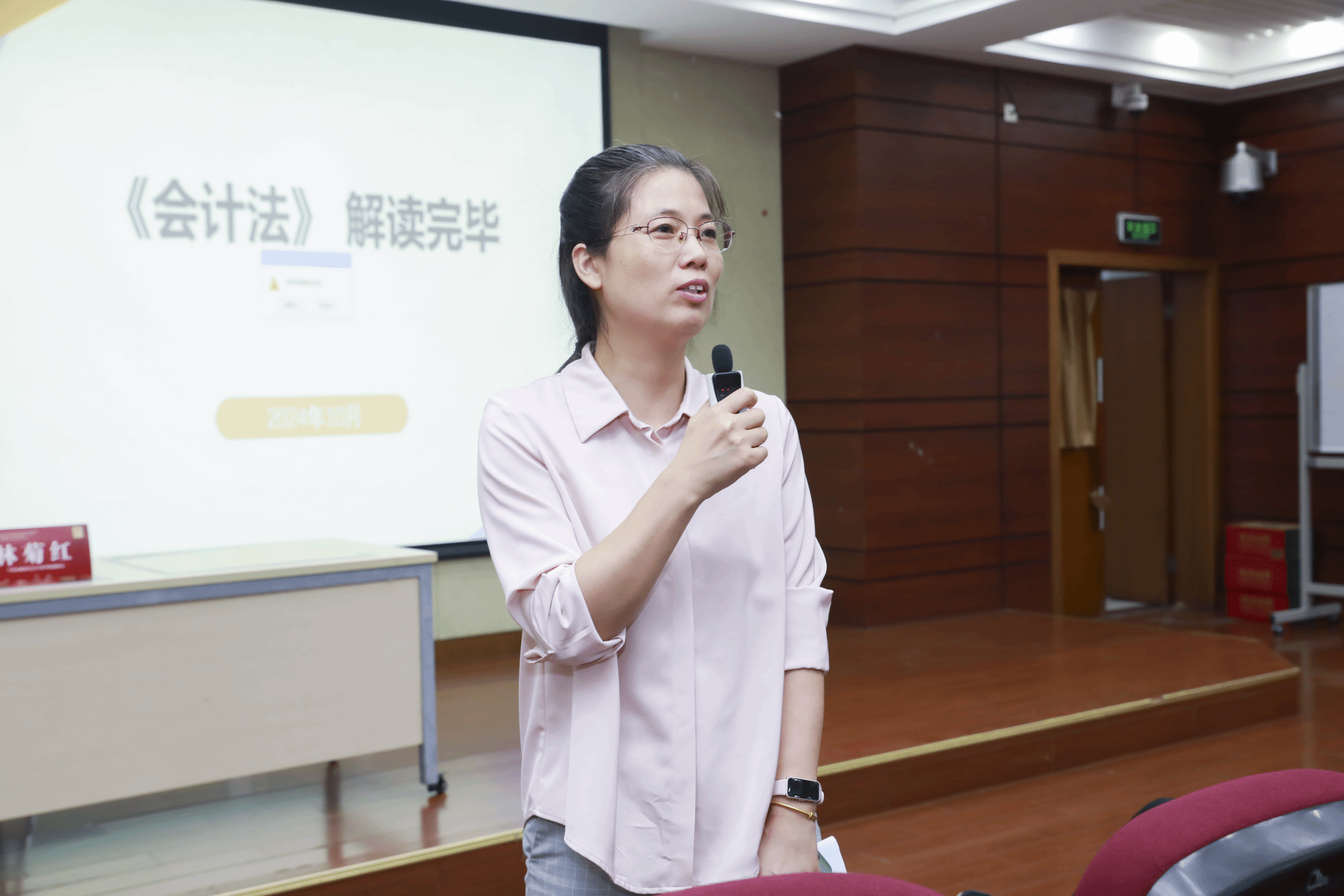 学习和践行新《会计法》,推进会计学科产教融合与课程思政建设,10月25日,由365完美体育财务处、管理学院会计系联合主办的“支部共建、产教融合,联合学习《会计法》”专题活动在365完美体育宝山校区经管大楼蔡冠深大讲堂成功举办,会议邀请了市财政局会计处林菊红调研员解读新《会计法》,财务处与管理学院领导、财务处与管理学院会计系全体教职工、二级单位财务工作人员、资产经营公司及下属企业的财务工作人员、管理学院与经济学院学生代表等近百余名师生现场参会。会议还特邀了学校法务办的人员出席。