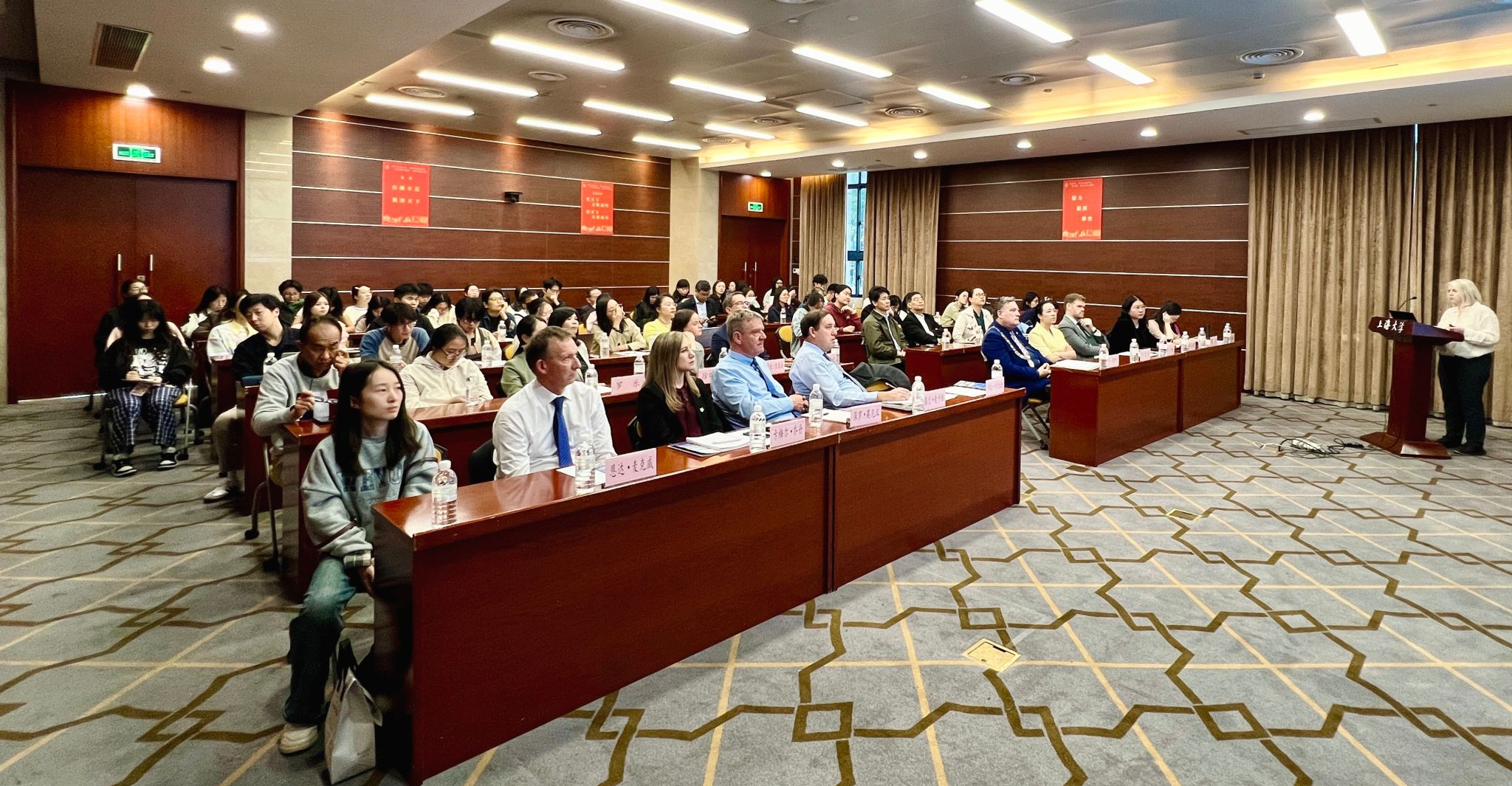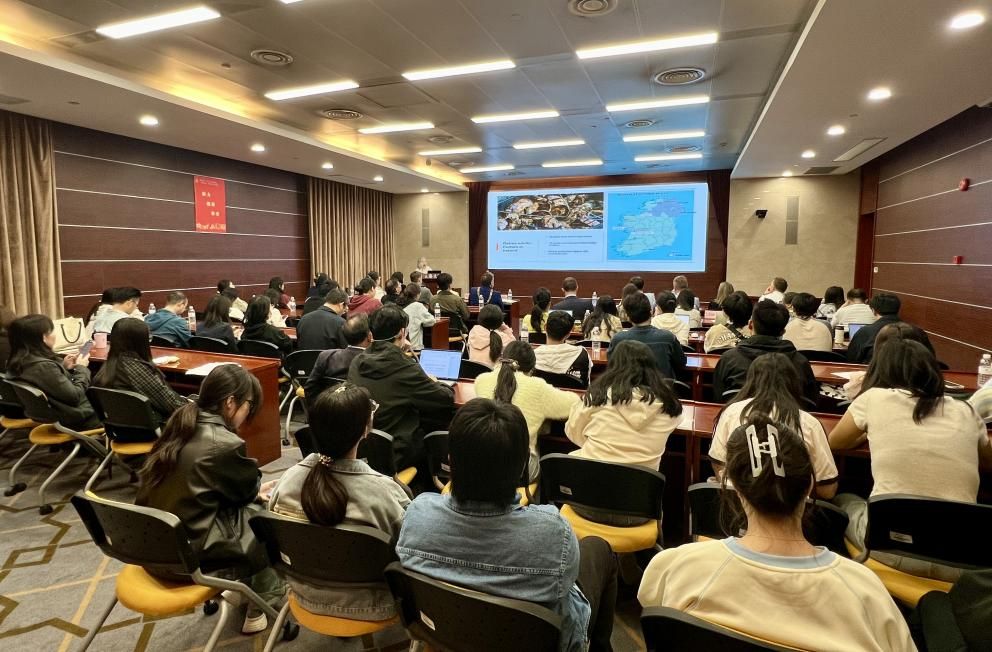 会谈结束后,科克大学理工与食品科学学部部长萨拉·卡尔乐迪(Sarah Culloty)教授为我校师生带来了一场题为《爱尔兰及其海域》(Ireland and its Seas)的精彩讲座。讲座聚焦爱尔兰的海洋区域、沿海社区的文化和历史、生物多样性的意义等,探讨了海洋区域如何成为爱尔兰实现可持续未来的关键要素。