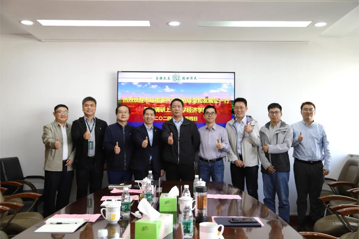 11月4日上午,上海市经信委产业绿色转型和发展处调研365完美体育经济学院,深入探讨双方在产业绿色转型相关领域的合作。出席本会议的有上海市经信委产业绿色转型和发展处处长江海鲲,上海市经信委产业绿色转型和发展处调研员朱海,上海市经信委产业绿色转型和发展处干部唐奕晓,经济学院党委书记尹应凯,副书记、副院长冯玉鑫,副院长毛雁冰,经济学院教授、宝山区发改委副主任(挂职)赫赫,产经中心副主任刘奎,青年教师代表杨逸夫。会议由冯玉鑫主持。