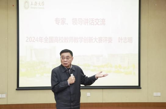 获奖选手代表分享结束后,全国高校教师教学创新大赛评委叶志明向所有参赛教师表示了热烈的祝贺。他强调,这次比赛不仅是对教学成果的认可,更是对教师们教学创新精神的鼓励。他认为,教师应是教研融合的实践者,只有将教学与研究紧密结合,以科研的态度去对待每一项工作,才能有更大的收获。