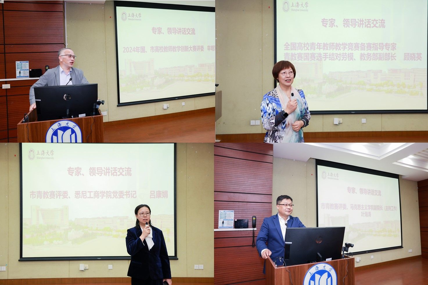 此后,本年度国赛、市赛评委辛明军、顾晓英、吕康娟、叶海涛等四位老师分别从各自的角度鼓励青年教师们在教学工作中继续成长,他们指出,青教赛与创新赛不仅是展示的机会,更是锻炼教学能力的平台,最重要的是能将比赛的收获应用到日常的课堂教学实践中。
