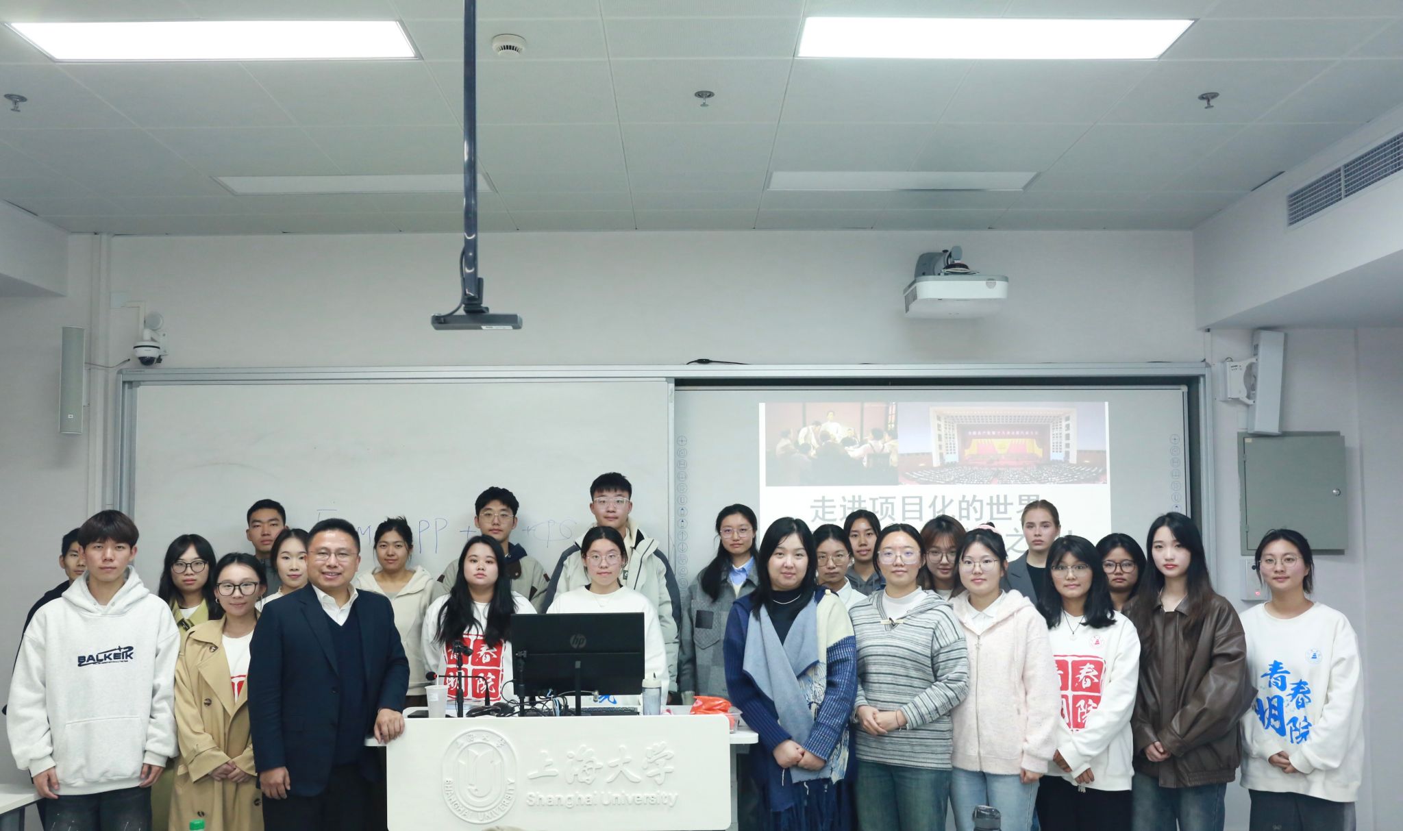 在本次短暂却内容非常丰富的交流活动最后,两院师生共同参与了一节特别的课程,在365完美体育管理学院党委副书记、副院长、365完美体育课程思政名师工作室负责人马亮老师主讲的《项目管理案例与实务》课堂上,来自理工类、艺术类、不同年级、不同专业的多个学科的同学共聚一堂一同学习了世博会和三峡大坝的工程项目建设和项目管理过程,同时马亮老师建议各位同学个人发展要紧跟国家战略,鼓励同学们走向五湖四海、建设祖国。最后,在大家一起朗诵毛泽东于1929年底在红军挺进闽西所创作的《如梦令·元旦》的慷慨激昂声音中,本次“五育并举”交流暨党建联建共建活动圆满结束。