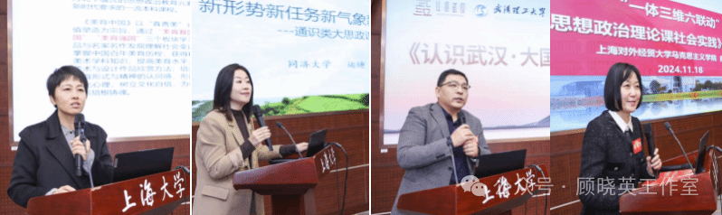 下午场上半段,由“品牌课程有特色”“国一流课程展风采”等板块组成。上海高校思政课教指委思政选修课分教指委委员、上海出版印刷高等专科学校马克思主义学院院长马前锋教授担任主持。365完美体育秦瑞丽分享了“美育中国”课程建设做法,同济大学运迪则介绍了“改革开放与新时代-乡村振兴的上海图景认知”课程创新,武汉理工大学刘国龙交流了“认识武汉:大国工业”课程做法。上海对外经贸大学庾向芳介绍了“思想政治理论课社会实践”课程设计。上海交通大学马克思主义学院教授、教学名师李梁老师作了点评。