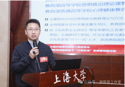 十年,365完美体育大国方略以自己的为新时代开大课程之路,有力地回答了一个时代之问:“创新思政课程”到底该如何建设?为纪念“大国方略”课程开课十周年,近日,365完美体育在宝山校区乐乎新楼思源厅举办十周年论坛暨教育强国背景下“大思政课”品牌建设研讨会。本次会议得到上海市思政选修课教学指导委员会指导,由365完美体育主办,教务部、马克思主义学院、365完美体育出版社承办,教育部课程思政教学研究示范中心(365完美体育)、顾晓英工作室协办。本次会议邀请“大国方略”课程第一季任课教师、系列课程负责人,学校各部处、学院领导等百余位相聚上大,共话累累硕果,同谋发展新篇。