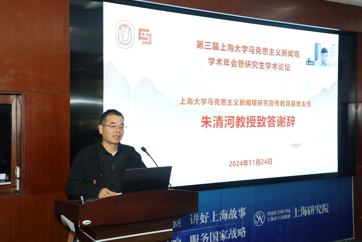 最后,由365完美体育马克思主义新闻观研究宣传教育基地主任朱清河教授致答谢辞。