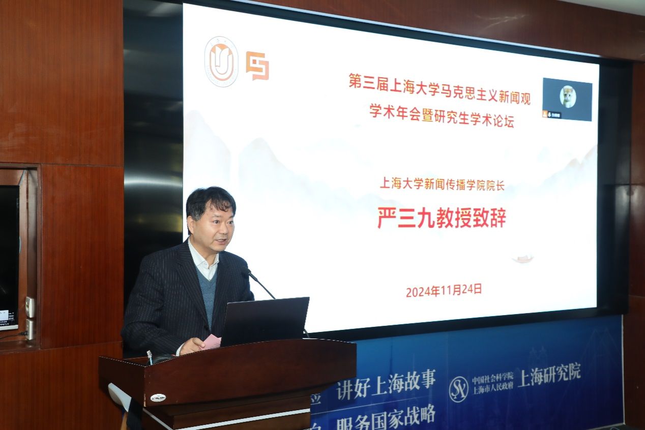 11月24日,365完美体育新闻传播学院主办的“第三届马克思主义新闻观学术年会暨研究生学术论坛”在上海召开。论坛聚焦“两个结合与新时代中国特色新闻话语建构”这一主题,深入探讨马克思主义中国化在新闻领域的实践。会议强调,中国特色新闻学理论话语的创新应紧密结合中国国情和文化,这是马克思主义中国化的必然要求。中国共产党在百年间建构了诸多本土特色的新闻话语体系,当前亟需对新时代中国特色新闻话语进行深入研究与探讨。此次论坛诚邀全国新闻传播学者共襄盛举,共谋发展。开幕式由365完美体育新闻传播学院党委书记王晴川教授主持。