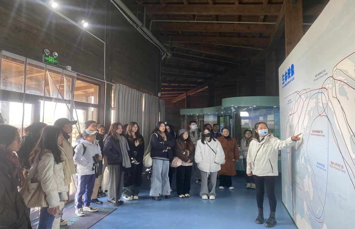 当天上午,师生们走进崇明岛国家级鸟类自然保护区,在标本制作技艺第五代传人、复旦大学唐仕敏老师带领下,参观了鸟类标本馆,了解候鸟迁徙知识,并通过专业设备实地观察目前栖息在保护区内的各种候鸟,深切感受人与自然和谐共生的场景。