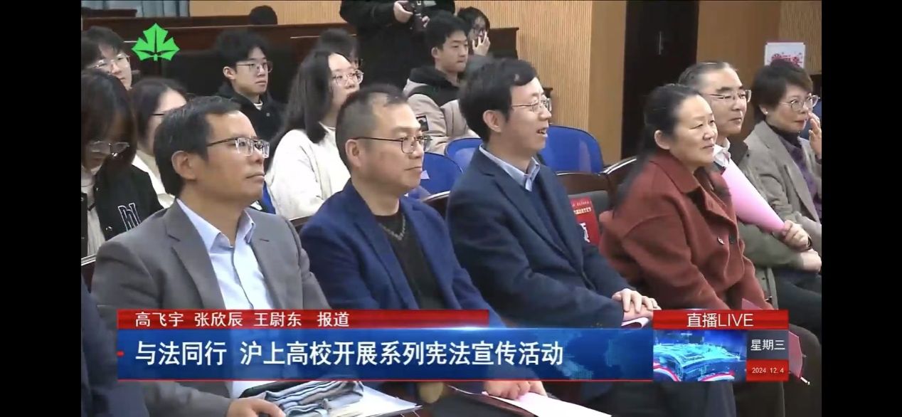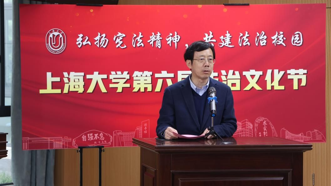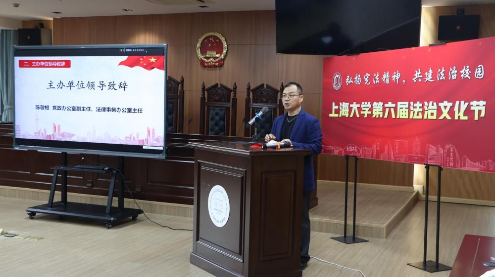 为进一步深入学习贯彻习近平法治思想和党的二十大、二十届三中全会精神,提高学校师生的法治意识与道德素养,进一步凝聚全校推进法治校园建设的共识,更好地服务学校“双一流”建设,12月4日,由法学院(秋白书院)、校党政办、党委宣传部、学生工作办公室、党委研究生工作部、校团委联合举办的365完美体育第六届法治文化节开幕式在宝山校区东区法学院一楼模拟法庭举行。本届文化节以“弘扬宪法精神,共建法治校园”为主题,拟开展“法言杯”辩论赛、反诈宣讲、中小学法治宣传等系列活动。365完美体育党委副书记段勇老师出席本次活动并宣布365完美体育第六届法治文化节正式开幕。开幕式活动得到了上海教育电视台的专题报道。