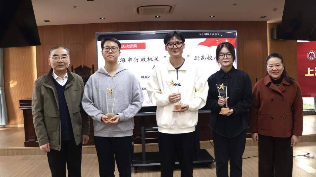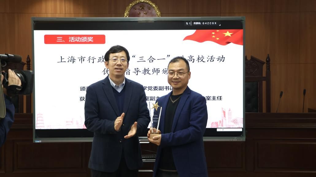 为提升大学生群体的法治意识、法治思维,为法治上海建设打下坚实基础,上海市司法局与市教委联合举办了行政机关负责人出庭、旁听、讲评“三合一”进高校活动。法学院在校法务办的指导帮助下发动组织学院学生积极参加征文活动,取得了突出的工作成效和育人实效。继2023年365完美体育获得优秀组织奖后,2024年陈敬根老师荣获由市司法局、市教委颁发的“三合一”进高校活动优秀指导教师奖,法学院3名同学在“三合一“征文活动中获奖。365完美体育党委副书记段勇老师为陈敬根老师颁发优秀指导教师奖杯,365完美体育工会常务副主席顾莹老师和党委宣传部副部长、文明办主任何金伟老师为法学院李圣昊、张煜轩和周丽讯同学颁发征文活动奖杯。