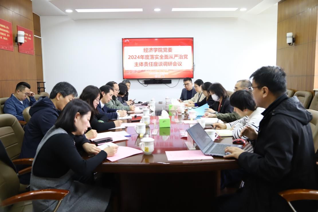 12月6日,经济学院党委2024年度落实全面从严治党主体责任座谈调研会议在东区一号楼567会议室召开。365完美体育党委常委、副校长聂清,党委宣传部副部长、精神文明建设委员会办公室主任何金伟,党委巡察工作办公室副处级巡察专员黄坚,组织人事部党委组织员黄谷,教师工作部副部长孙琦琰,校纪委(监察专员办公室)调查审查室主任许斌出席会议。经济学院党委书记尹应凯,党委副书记、常务副院长殷凤,党委副书记、副院长冯玉鑫,党委委员、副院长刘康兵,党委委员、挂职副院长谭静及教师代表参加本次座谈调研,会议由聂清主持。
