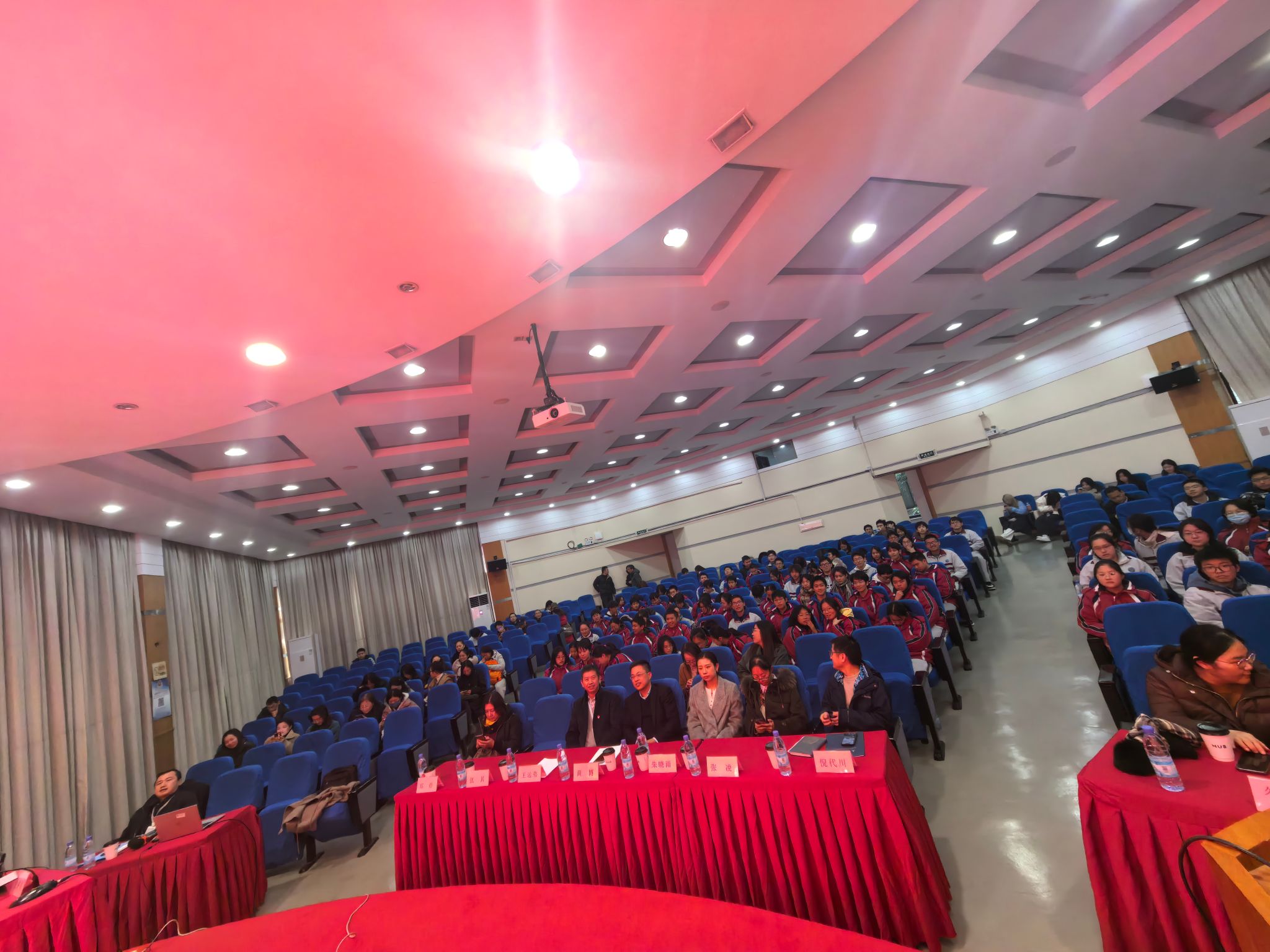 接着,中国航发商发信息技术部黄博书记以《铸心筑梦铸重器》为题,与大家交流了中国航空发动机的发展历史和航空人奉献精神。黄博书记首先从“筑梦篇”开始,以自己的求学之路为大家讲述了自己与航空结缘的经历。接着在“铸造重器”部分,分享了航空发动机发展历程,同时穿插了很多感人至深的故事,让我们更进一步了解“大国工匠”们的“国之重器”研发圆梦之路。随后,黄书记以“知己,知人,知世,知智慧”鼓励在场的所有同学,立定高远志向,持之以恒地努力,为中华民族的伟大复兴贡献自己的力量。