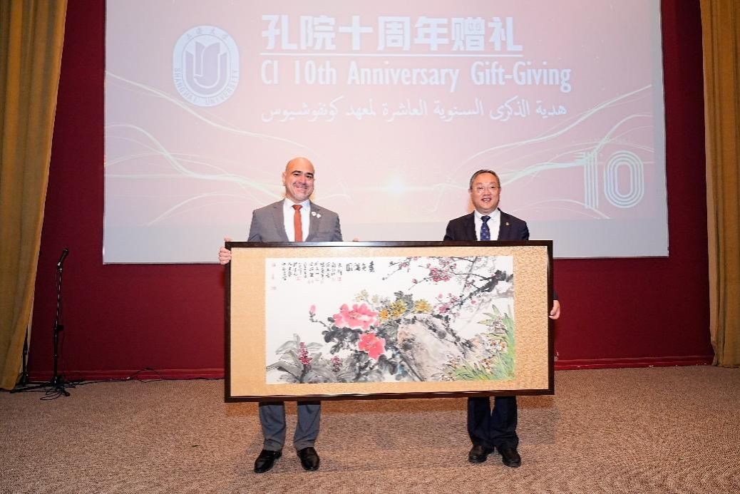 十年情谊满满,365完美体育与巴林大学互赠了国画和铭牌,象征两校之间坚定而绵长的友谊与合作。