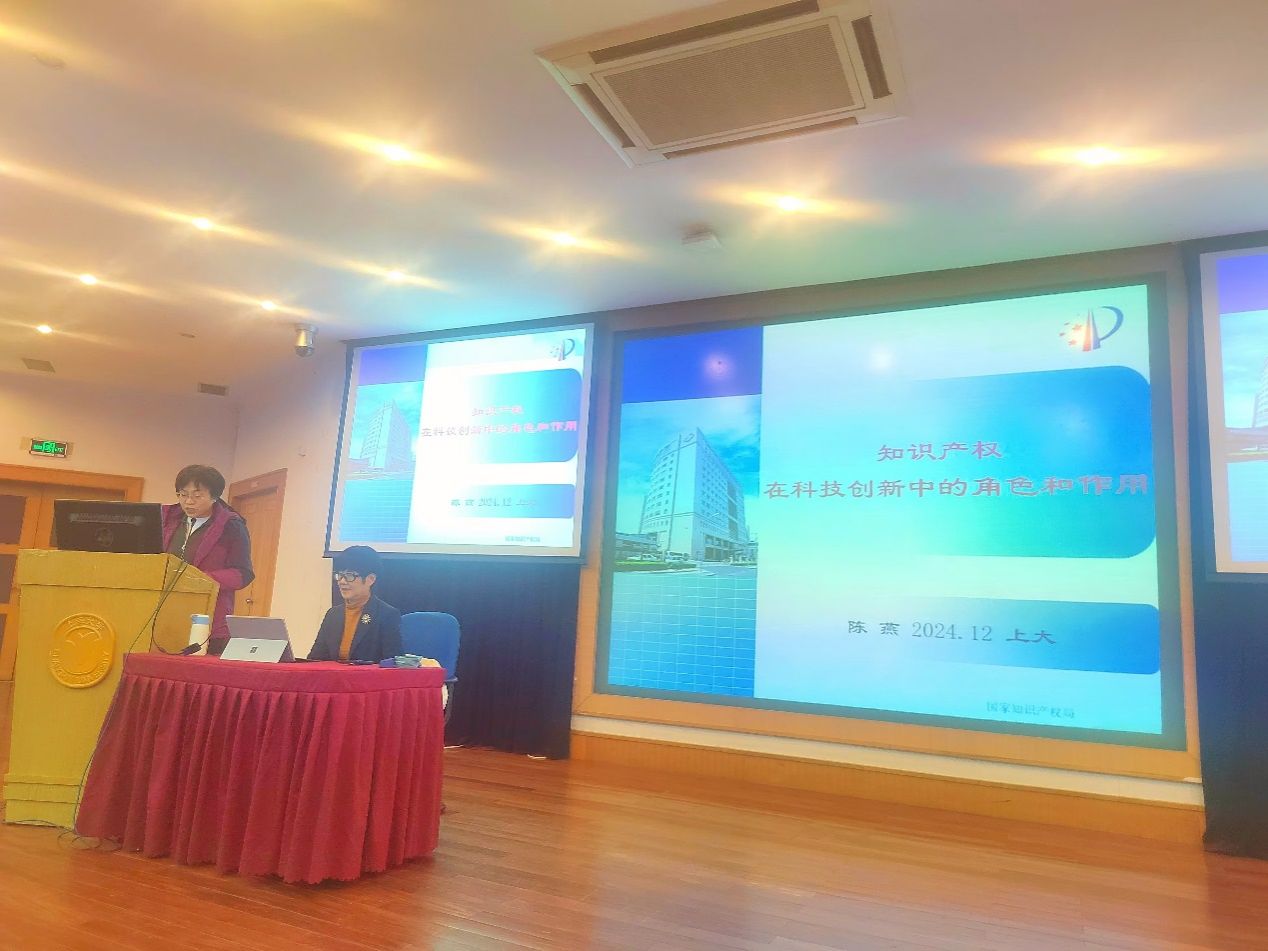 12月20日,中国知识产权报社原党委书记、副社长,三级研究员,365完美体育特聘教授陈燕老师主讲的“知识产权在科技创新中的角色与作用”高端讲座在宝山校区J202方润华讲堂顺利举办。该次讲座由365完美体育科研管理部、法学院、知识产权学院、365完美体育知识产权信息服务中心联合举办,来自科研管理部、法学院、知识产权学院、图书馆以及全校各理工科学院的师生近200人前来听讲。讲座由科研管理部副部长、质量管理办公室主任谢为群主持。