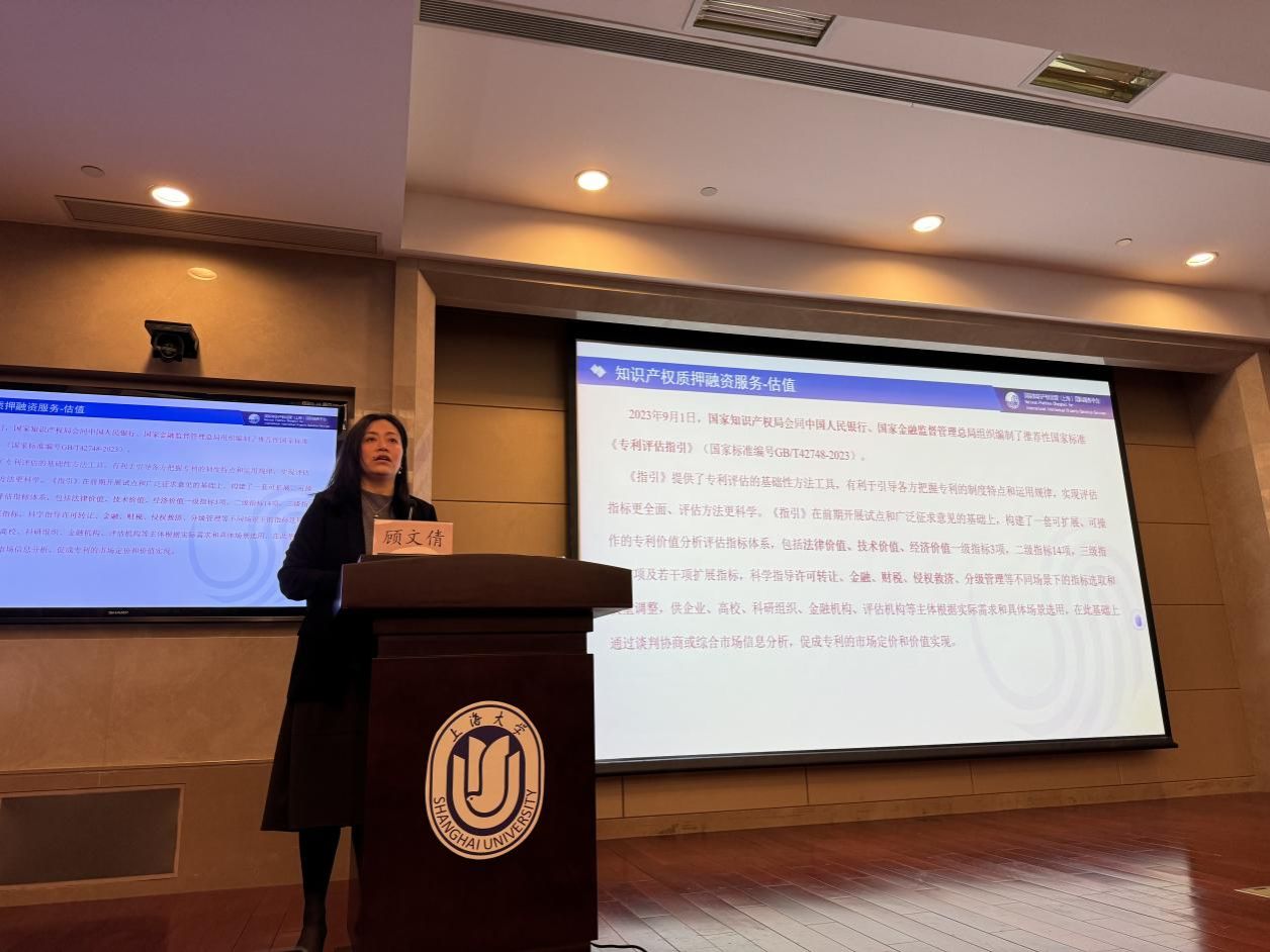 上海知识产权交易中心副总经理顾文倩进行“知识产权质押融资实例分析和研究”专题授课。