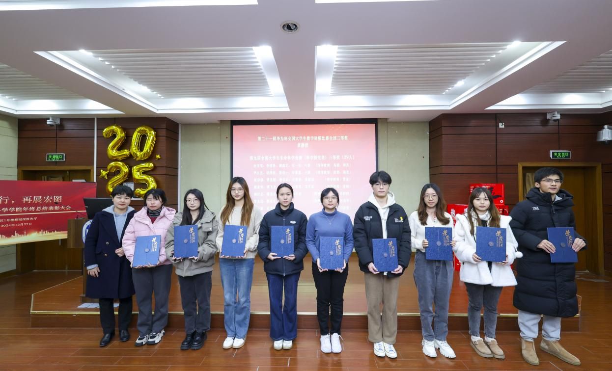 最后表彰了第二十一届华为杯全国大学生数学建模比赛全国三等奖获得者黄静滢,第九届全国大学生生命科学竞赛(科学探究类)三等奖获得者代表张诗睿、顾佳业、徐允诺、顾家韦、朱菲雪、吴佳颖、严小杰,由学生工作办公室副主任、本科生书院管理中心副主任马成瑶为他们颁奖。