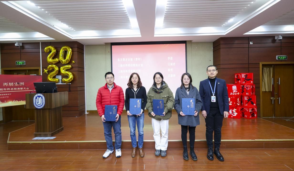 在表彰颁奖环节,首先表彰了国家“万人计划”青年拔尖人才获得者冯炜,上海市自然科学奖一等奖获得者代表李进,教育部国际合作实验室代表王红云;东方英才计划(青年)李进,上海市科委启明星计划王丽君,上海市科委扬帆计划杨雪,上海市教委曙光计划贝毅桦。由校组织人事部副部长、人才工作办公室主任姜颖为他们颁奖。