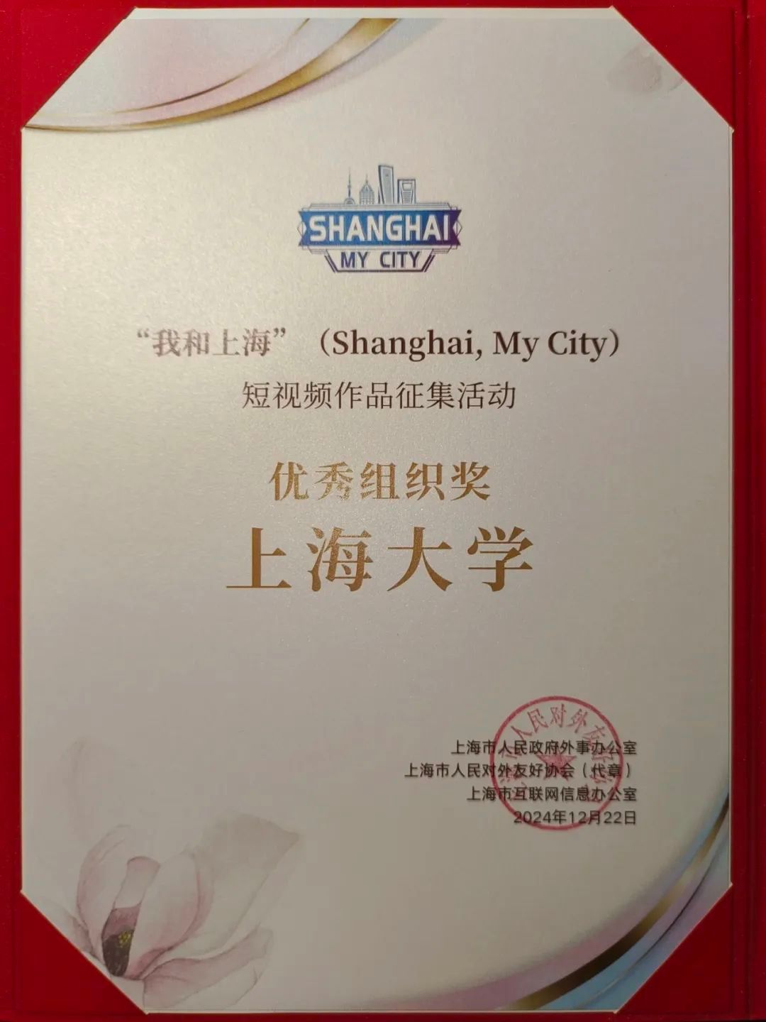 近日,“我和上海”(Shanghai, My City)短视频征集活动颁奖仪式在上海博物馆东馆举行。此次活动由上海市人民政府外事办公室、上海市人民对外友好协会和上海市互联网信息办公室主办,旨在对外讲好中国故事、传播上海精彩,进一步壮大知华友华、知沪爱沪“朋友圈”,营造“人人都是精彩故事的传播者”的良好氛围。