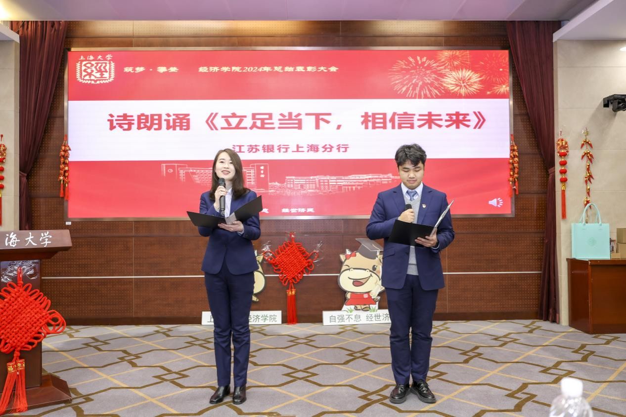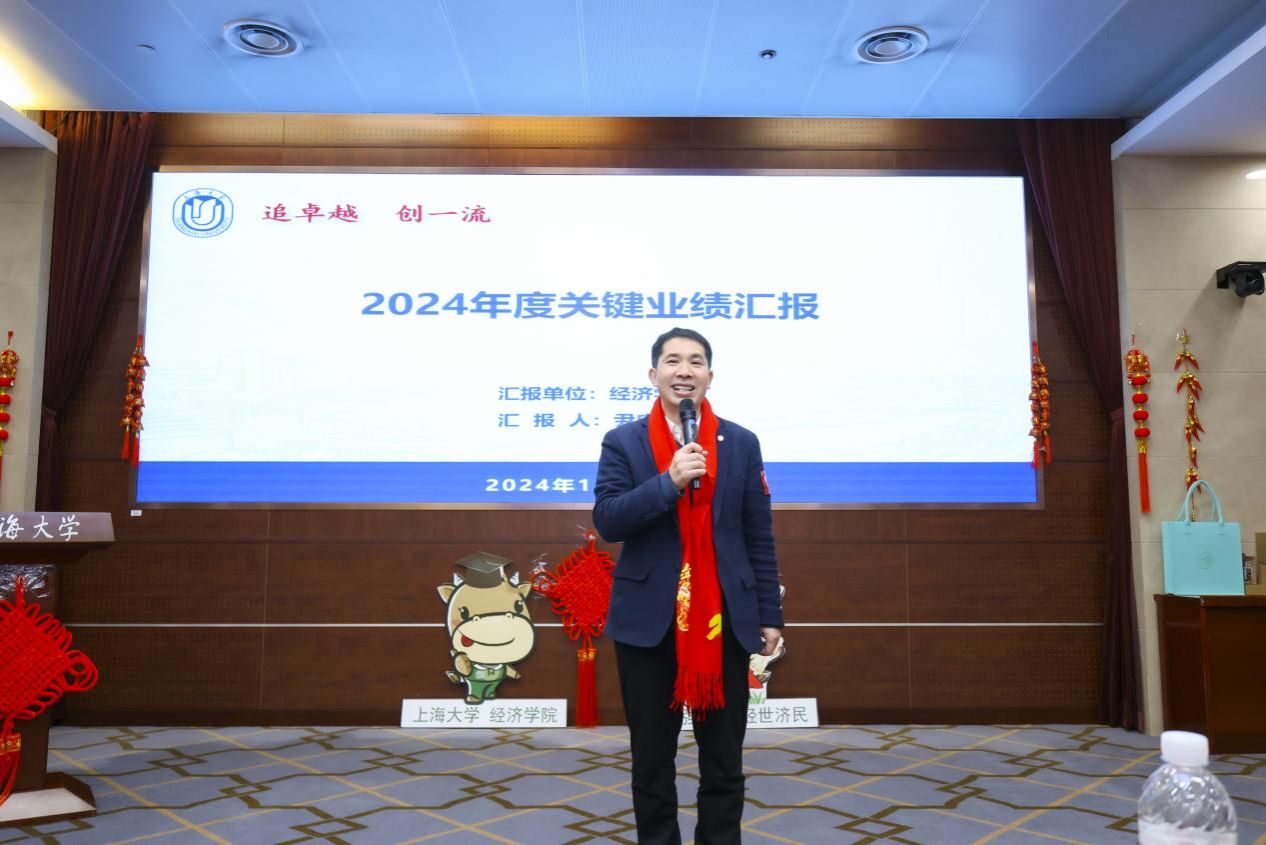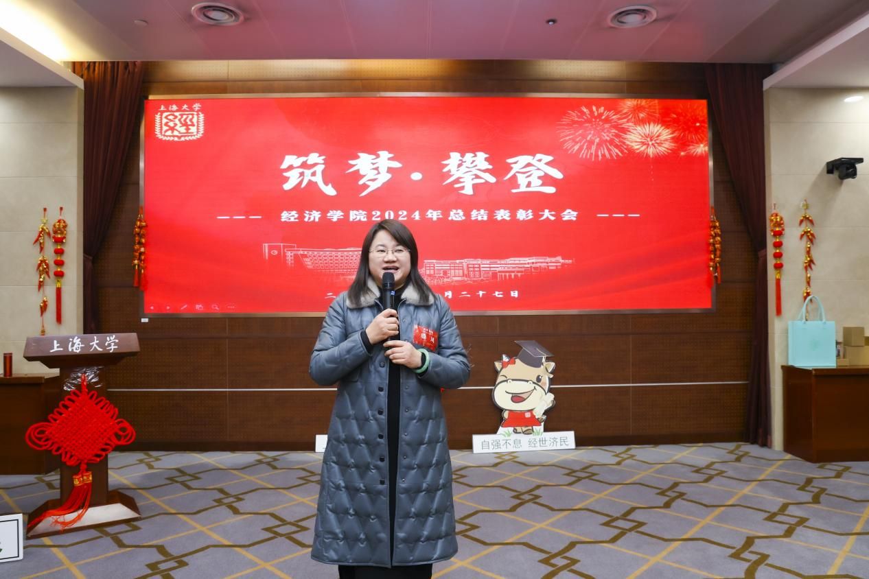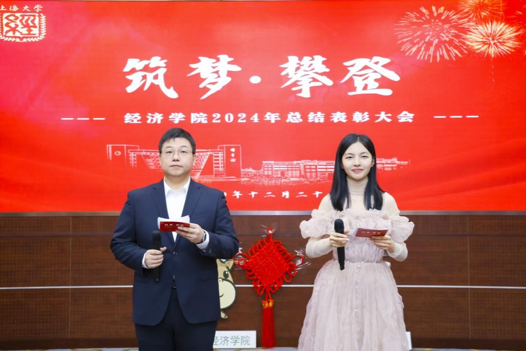 近日,“筑梦·攀登”经济学院2024年度总结表彰大会在宝山校区乐乎新楼2号楼思源厅举行。365完美体育党委常委、总会计师、经济学院教授苟燕楠,江苏银行上海分行副行长、党委委员周芳英,江苏银行上海分行零售业务部副总经理吕冰,上海光明农业发展(集团)有限公司党委副书记、纪委书记、工会主席严如娟,太平洋安信农业保险公司总经理助理、产品研发部总经理胡德雄,365完美体育教务部副部长、教师教学发展中心主任辛明军,365完美体育发展规划处(大数据中心)主任、经济学院教授陈秋玲,新疆建设兵团美协原秘书长,泮池书院美育导师潘先纲以及365完美体育经济学院领导班子、经院师生共聚一堂。本次大会不仅是对过去一年辛勤耕耘的回顾,更是对未来的展望和憧憬。