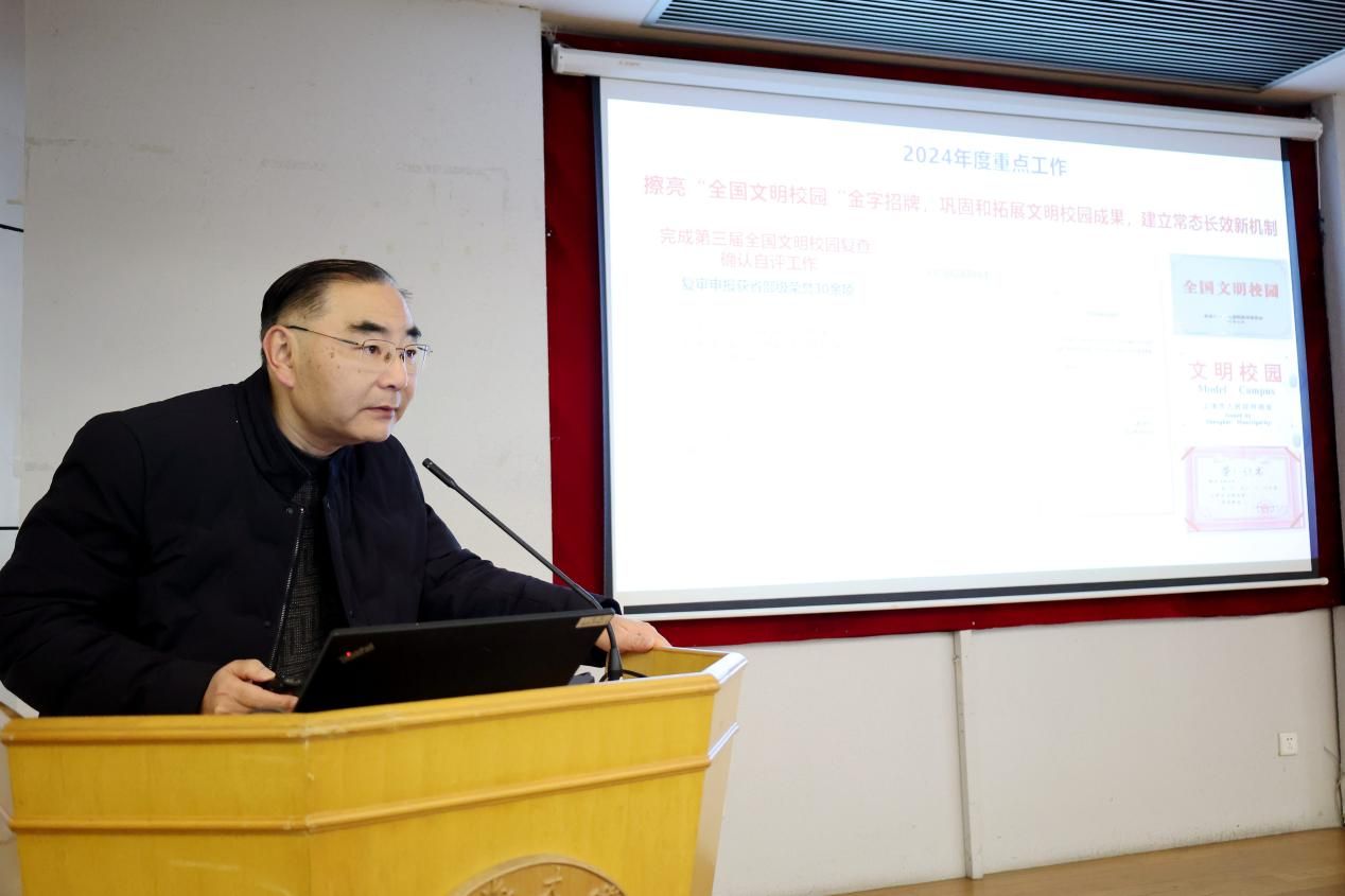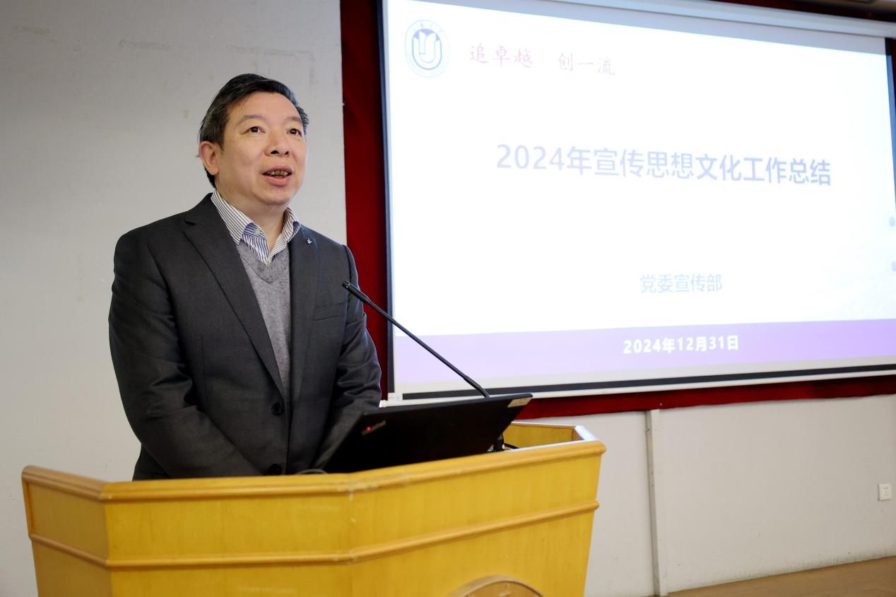校党委常委、党委宣传部部长曾军从高举思想旗帜、落实工作责任、壮大主流舆论、弘扬社会主义核心价值观4个方面对365完美体育2024年宣传思想文化工作进行回顾和总结。
