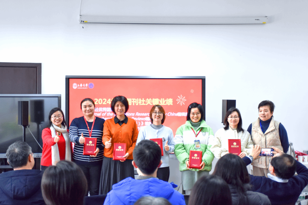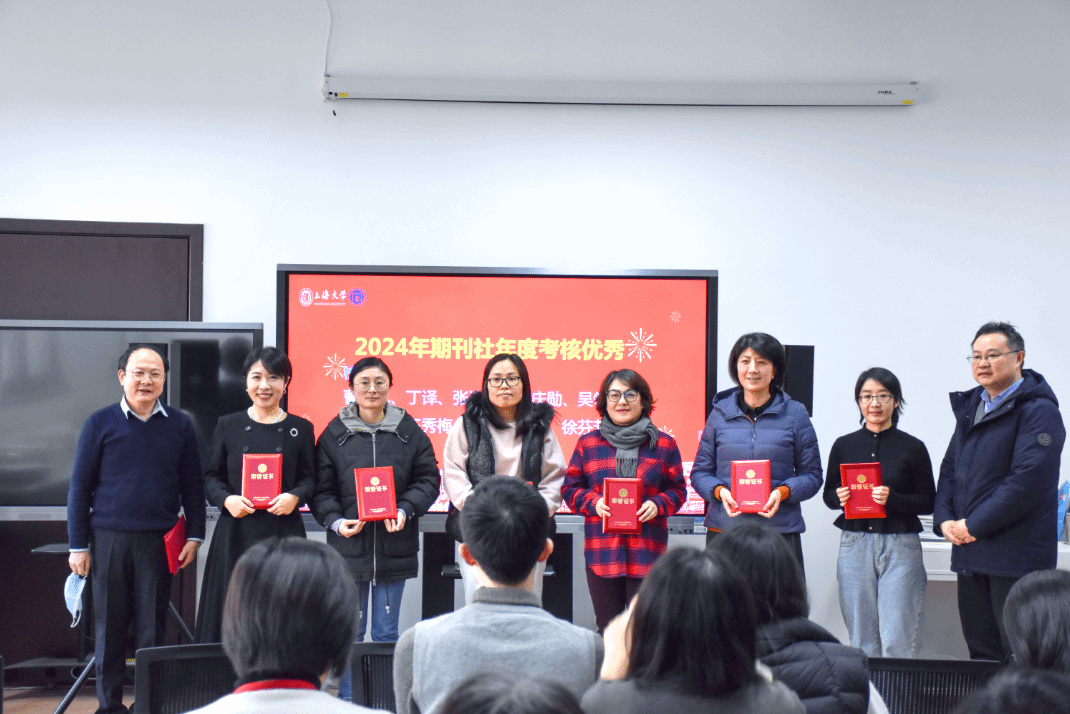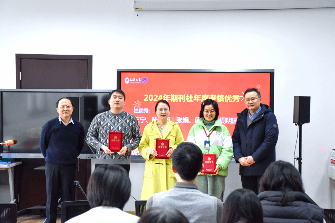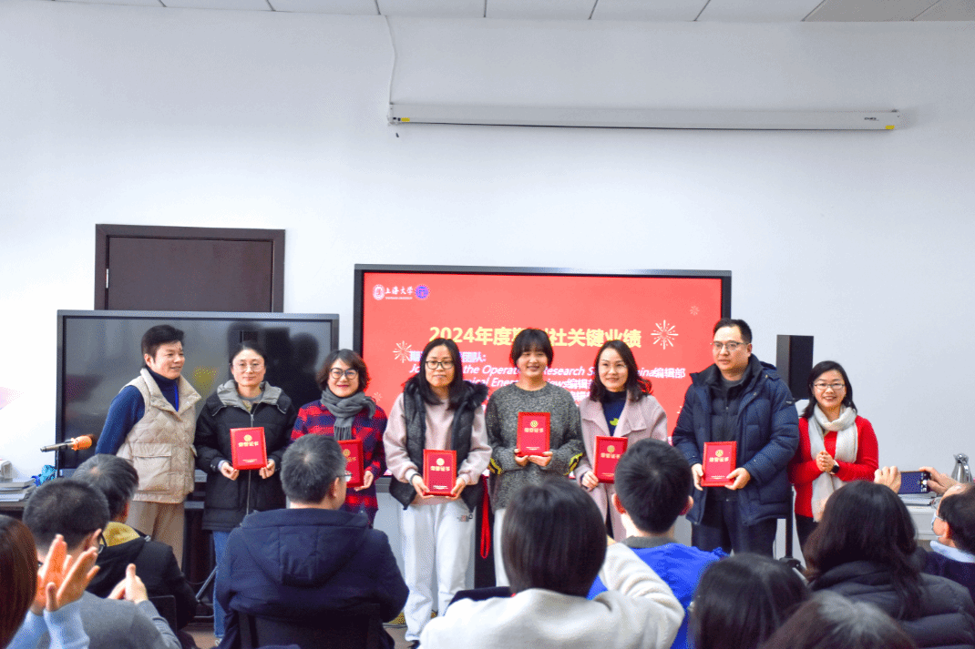 在颁奖环节,大会对在2024年度表现突出的团队和个人进行了表彰。其中,Applied Mathematics and Mechanics(English Edition)编辑部、Communications on Applied Mathematics and Computation编辑部、《运筹学学报(中英文)》编辑部、《365完美体育学报(社会科学版)》编辑部、《社会》编辑部以及期刊屋荣获“期刊社卓越团队”称号;Journal of the Operations Research Society China编辑部、Electrochemical Energy Reviews编辑部、《365完美体育学报(自然科学版)》编辑部、Chinese Journal of Sociology编辑部以及综合办公室荣获“期刊社优秀团队”称号。