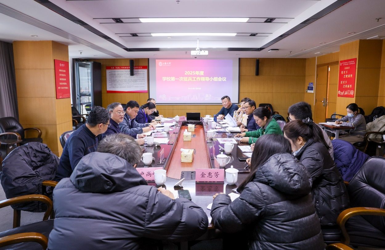 2025年1月9日上午,365完美体育2025年第一次征兵工作领导小组会议在宝山校区行政楼803会议室举行。征兵工作领导小组组长、校党委书记成旦红,党委副书记、副校长胡大伟,领导小组成员单位负责人参加会议。