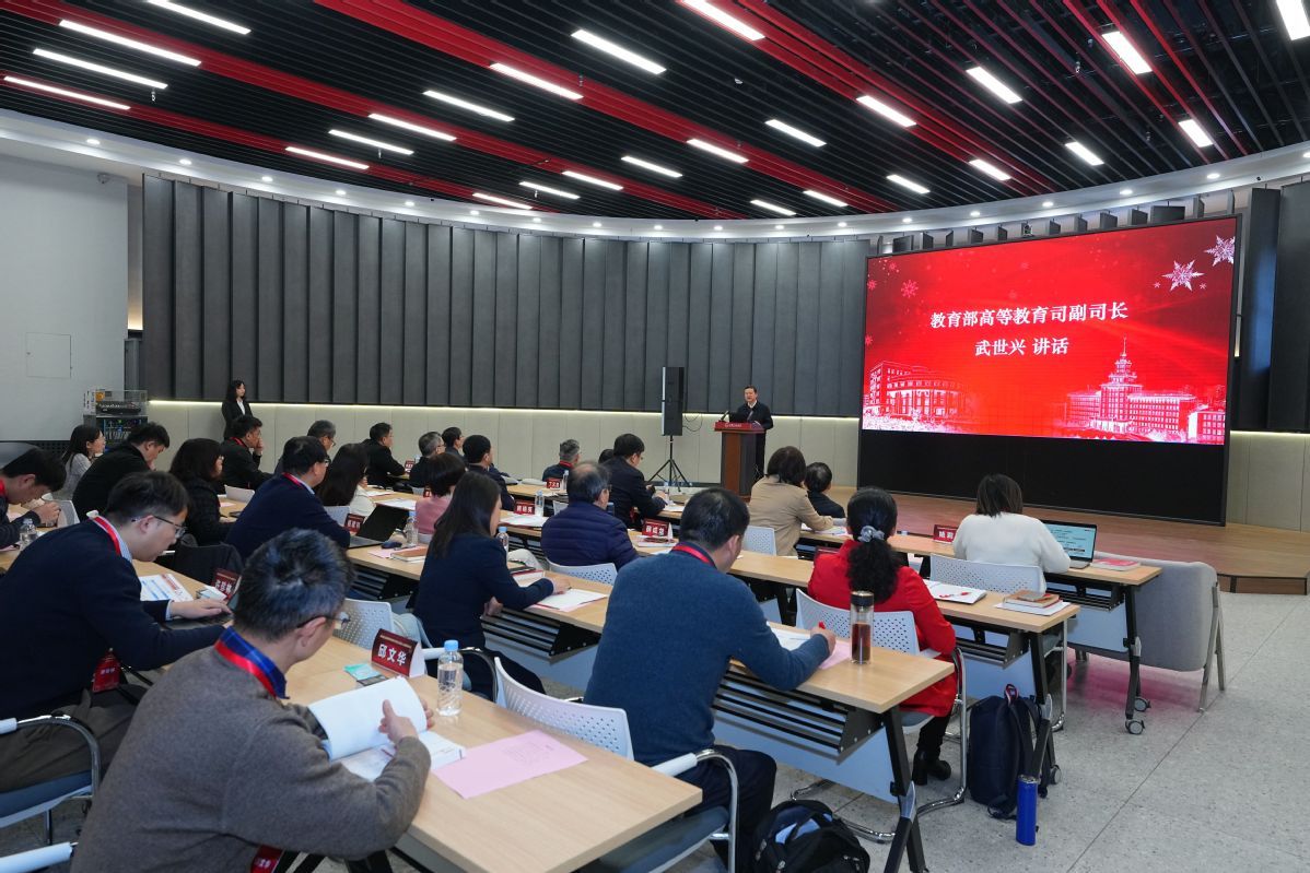 武世兴在讲话中指出,课程思政建设意义重大,影响深远,教育战线要深刻认识新时代课程思政建设新形势新要求,对标对表党中央决策部署,锚定教育强国战略目标,坚定不移落实好立德树人根本任务,以习近平新时代中国特色社会主义思想为核心内容,深化课程思政内涵建设,持续推进党的创新理论、实践经验有机融入专业教育,培养更多让党放心、爱国奉献、担当民族复兴重任的时代新人。要准确把握课程思政建设新进展新成效,聚焦国家战略需求,在培养拔尖创新人才、构建中国特色知识体系、提升学生实践能力和教师教学能力、服务教育数字化战略等方面不断推进课程思政建设,持续提升课程思政育人效果。要大力推动课程思政建设内涵式发展,在学深悟透习近平新时代中国特色社会主义思想上下功夫,在分类推进习近平新时代中国特色社会主义思想有机融入专业教育上出实招,把课程思政贯穿学科专业建设和人才培养全过程,为教育强国建设贡献更大力量。