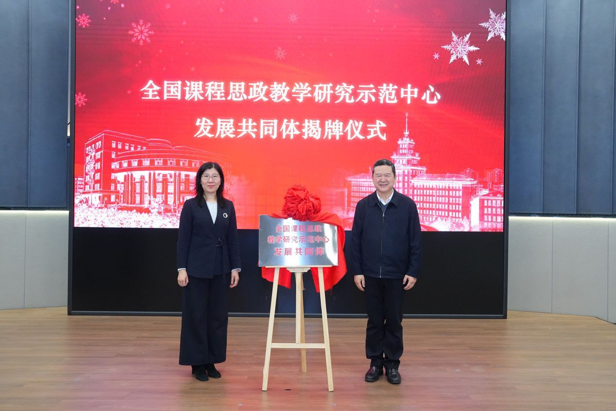 为进一步引领汇聚全国课程思政教学优秀力量,共同探索教育教学新模式,推动课程思政高质量发展,会上全国高校教师网络培训中心与15家教育部课程思政教学研究示范中心共同发起成立“全国课程思政教学研究示范中心发展共同体”。武世兴、程爽为共同体揭牌。