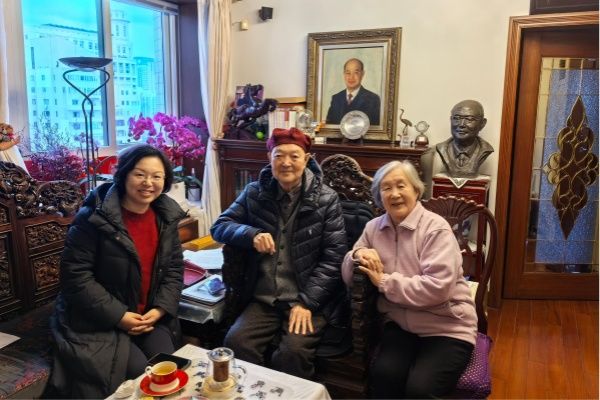 她们先是到了老会员家属施丽霞老师家中。这是她们连续第7年代表民进上大来探望。前几年老会员蒋嘉俊因病故世,孩子在国外工作,会员家属施丽霞老人一直独居。民进上大委员会延续了这份问候,详细询问了她的身体状况和日常生活情况。93岁的老人刚刚上完钢琴课(85岁开始学钢琴),精神矍铄,乐观豁达,对生活和身边的人充满感恩,对国际国内形势也非常关注。每次与施老师的交流,都让人受益匪浅,如沐春风,感受到生命的启迪。她表示非常感谢民进,在先生故世之后,还一直对她表示关心和支持。亲戚朋友的关照,让她感到并不孤单。她说自己是一棵老树,大家是阳光雨露,她还想再看两届世界杯!