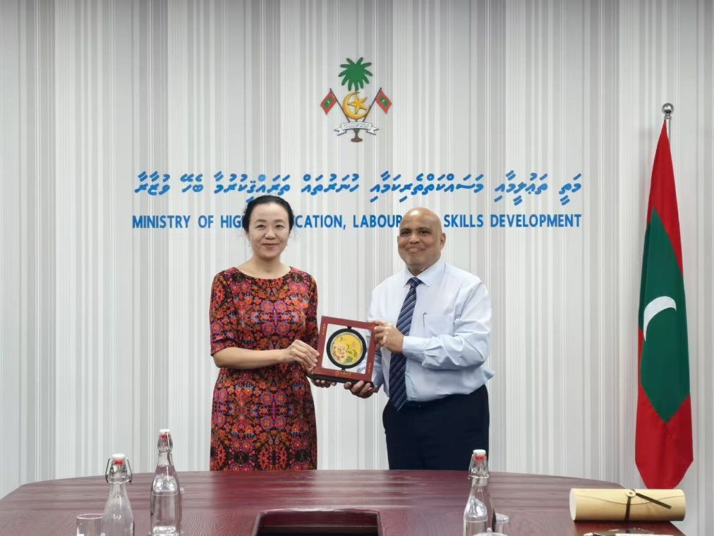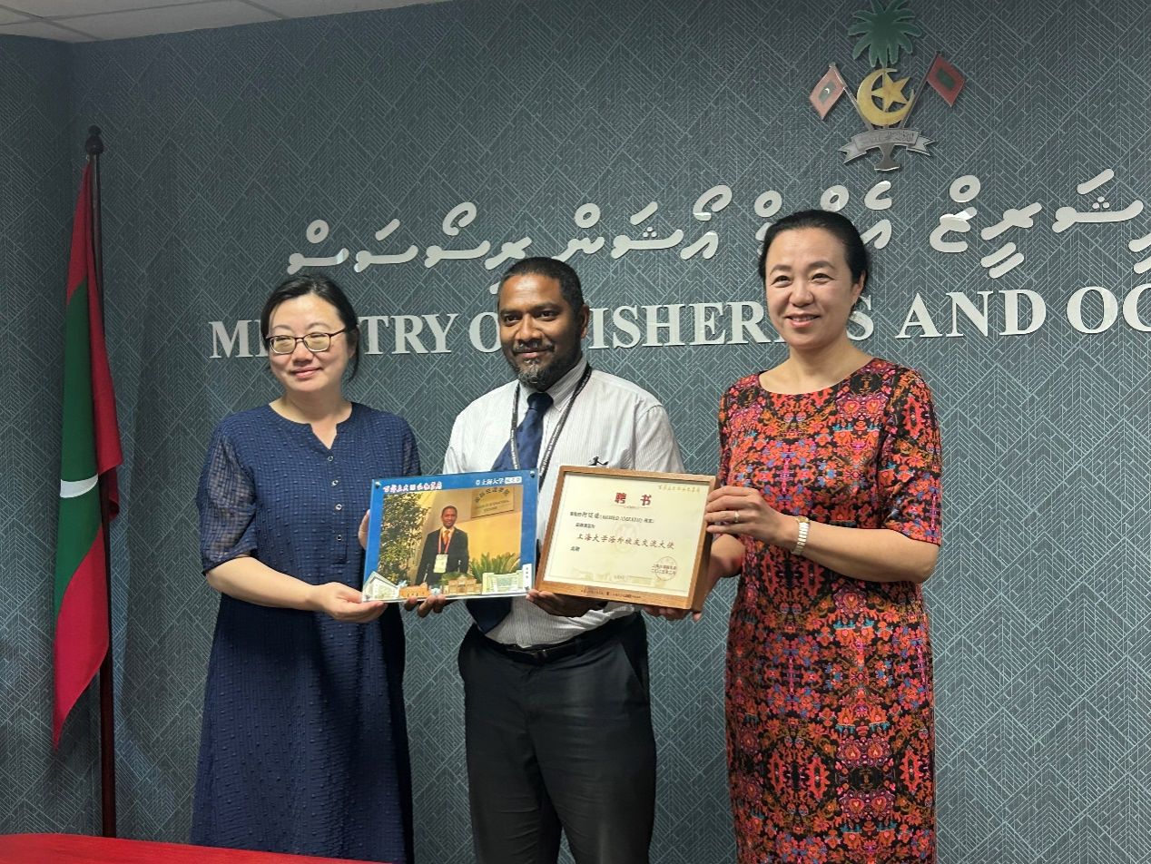访问渔业海洋部时,Ahmed国务部长深情感谢母校的培养,回顾了在上大就读时的历历场景并表示,没有当初赴华留学的正确决定就没有现在的发展机会,上大的本硕博教育经历是其人生的宝贵财富,希望母校能扩大留学生招生规模,为马尔代夫年轻人,特别是渔业海洋部年轻干部提供更多学习机会。于雪梅表示,Ahmed部长是上大国际学生的杰出代表,是母校的骄傲,身居要职仍心系母校发展,支持当地中文教育。双方一定加强合作,为更多中马青年交流提供平台和机会。