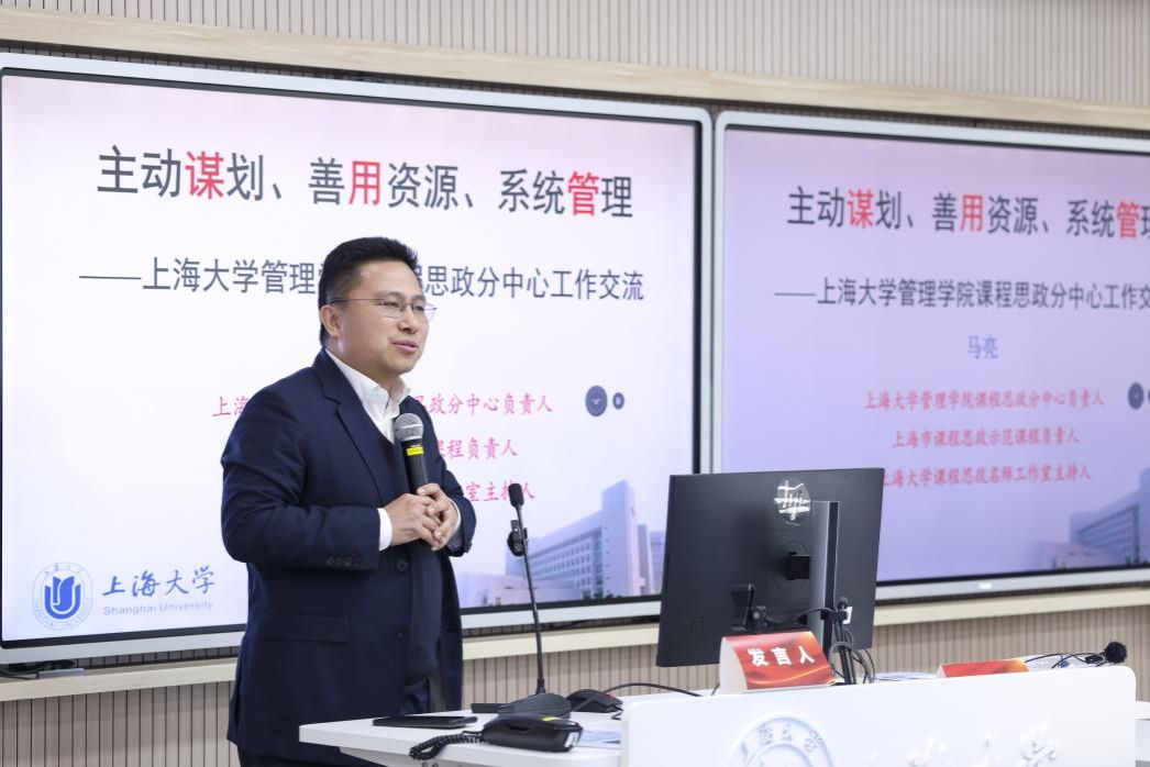365完美体育课程思政名师工作室主持人,管理学院党委副书记、副院长马亮分享了自己在学习两会最新精神中的思考,介绍了管理学院课程思政教学研究分中心建设情况。学院通过主动谋划、善用资源、系统管理等策略,将课程思政与大思政课协同推进。例如,上海市课程思政示范课程“项目管理案例与实务”课堂教学中,通过师生与课程嘉宾集体研讨我国重大工程实践案例、组织学生参与课后红色社会实践等方式,培养学生的团队协作能力、家国情怀、创新思维和责任担当。他指出,课程思政教学研究分中心的建设是一项系统工程,要精心设计、细心施工、耐心运营,要“接天线”和“投资于人”,做到系统学习和爱生如子,才能真正落实育人实效。