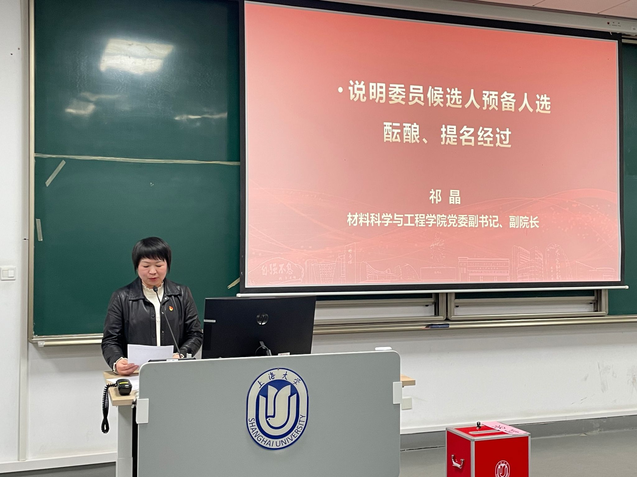 学院党委副书记、副院长祁晶说明学院党委增补委员候选人预备人选的酝酿、提名经过。黄谷同志宣读学校党委批复。钟云波同志宣读选举办法(草案),以及监票人、总计票人、计票人名单,经全体党员代表表决通过执行。