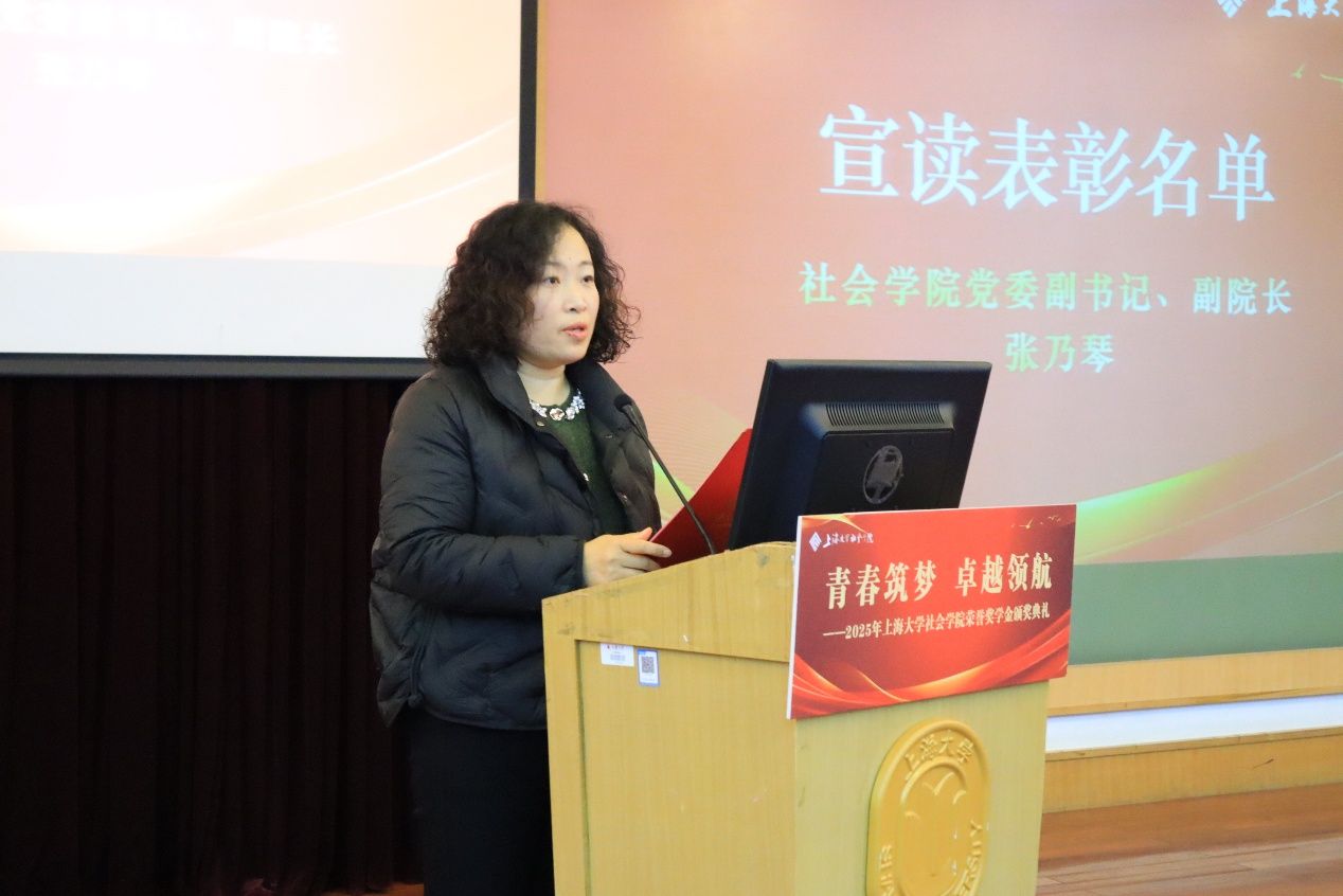 随后,社会学院党委副书记、副院长张乃琴老师宣读本次表彰名单。她对获奖学生表示祝贺,并感谢各位嘉宾的到来以及奖学金资助者的热切感谢,希望获奖同学再接再厉,鼓励同学们向优秀学子看齐,不断突破自我。