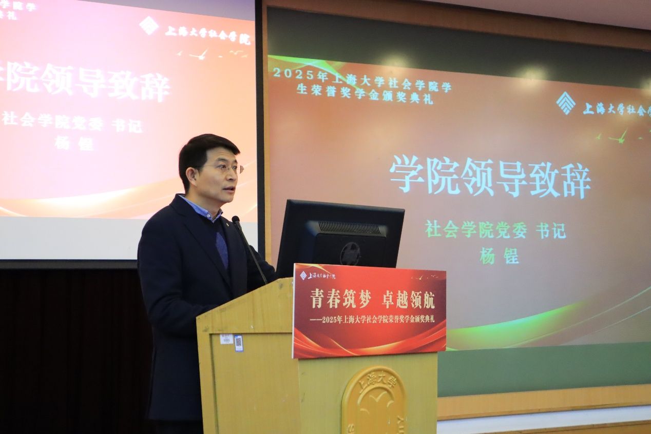 社会学院党委书记杨锃发表致辞。他代表学院欢迎各位领导嘉宾的到来,并围绕AI时代下的社会变迁,分享了对社院学子的期许。他指出社院人更应积极探索如何创造新的生活领域和生活方式,鼓励同学们走入社会、深入社会、扎根社会,继承费孝通先生“志在利民”的精神,在田野调查与社会实践中收获成长,在学习研究与社会服务中践行“建设社会”的责任。