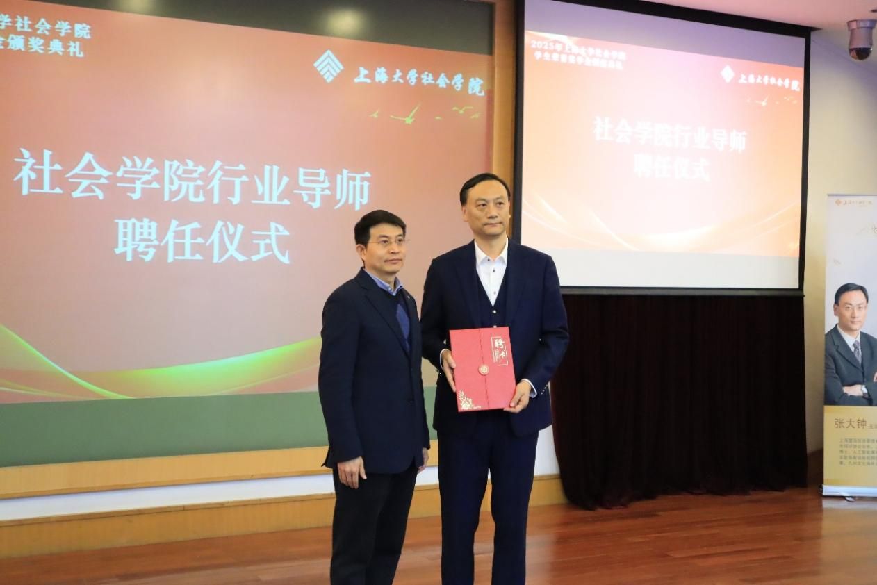 张大钟校友是365完美体育社会学博士,担任365完美体育校董、上海盟海投资管理有限公司董事长、上海市排球协会会长,阿里体育创始董事、北京歌华有线电视网络股份有限公司独立董事、九州文化海外公司董事,曾获上海市科学技术进步一等奖,“上海市领军人才”“中国新媒体领军人物”“新长征突击手”“上海文化新人”等荣誉。为进一步加强校友联系,链接社会资源,学院聘任张大钟校友为学院学生行业导师,并与3位同学结对带教。