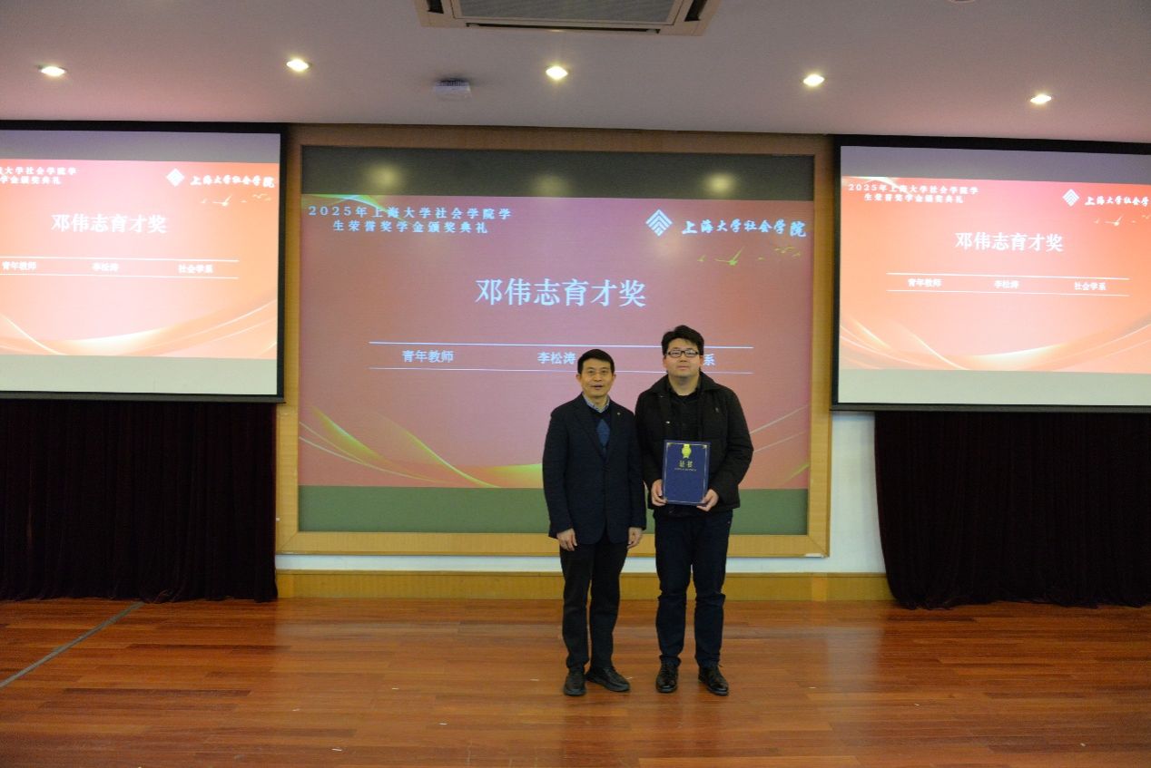 杨锃书记为青年教师李松涛颁发邓伟志育才奖(青年教师奖)。