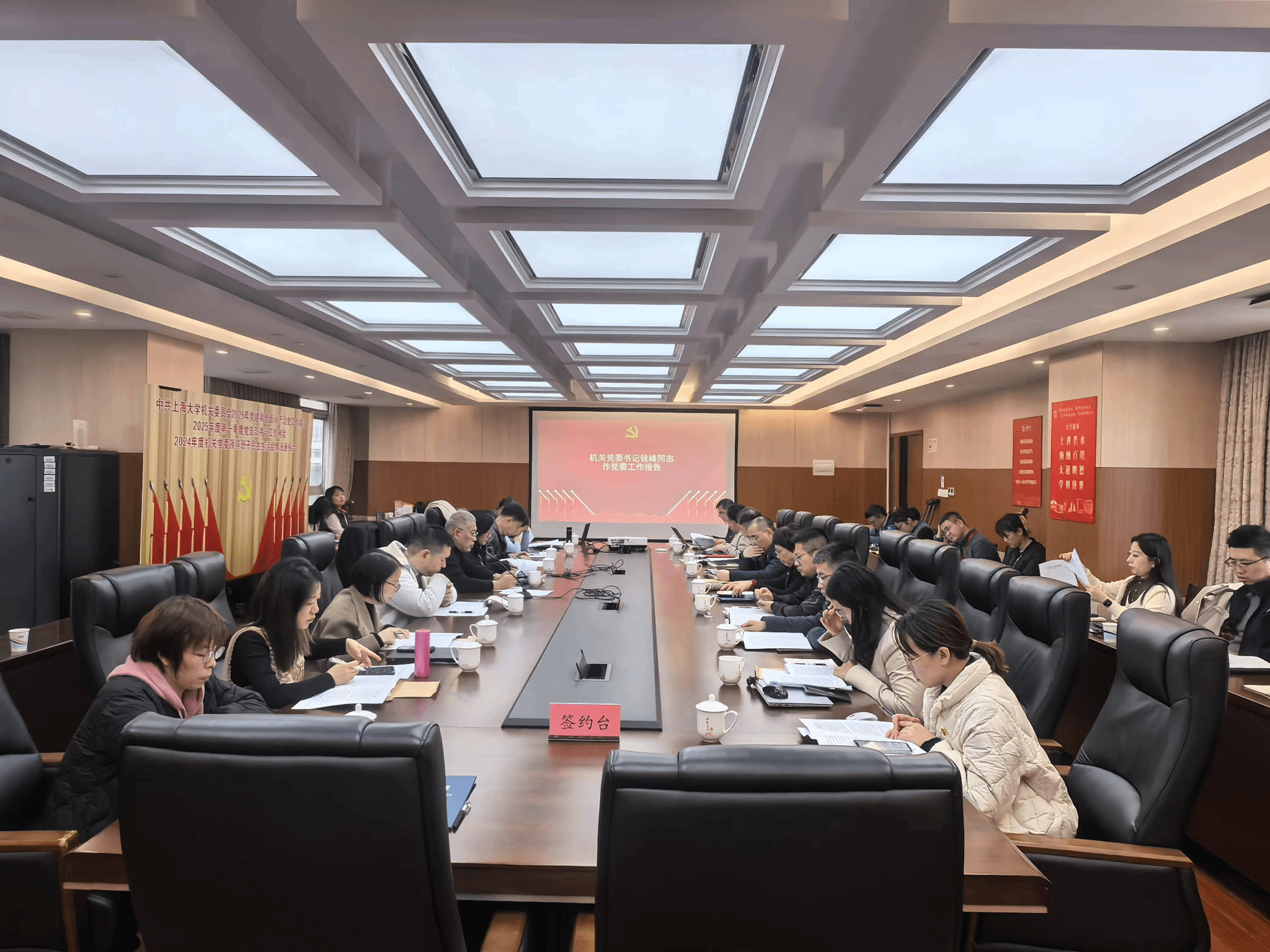 3月14日下午,机关党委在校本部行政楼501会议室召开2025年党建和全面从严治党工作会议,机关党委班子成员、机关纪委班子成员、各党支部书记、机关工青妇组织和青联会负责人、部分党代表及党外人士代表出席会议。会议由机关党委副书记郑亮主持。