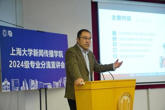 近日,365完美体育新闻传播学院2025年专业分流宣讲会在宝山校区行政楼报告厅顺利举行。365完美体育新闻传播学院党委书记王晴川,党委副书记、副院长王智君,副院长牛盼强,挂职副院长、智能传播系主任王虎,智能视听系主任虞国芳,新闻传播学系副主任单凌,广告学系副主任刘志杰,广播电视学专业负责人汪洋,及学院教师代表、学工团队与2024级人文社科大类学生齐聚一堂,共同领略新闻传播学院的独特魅力。此次宣讲活动由学院党委副书记、副院长王智君,副院长牛盼强联袂主持。