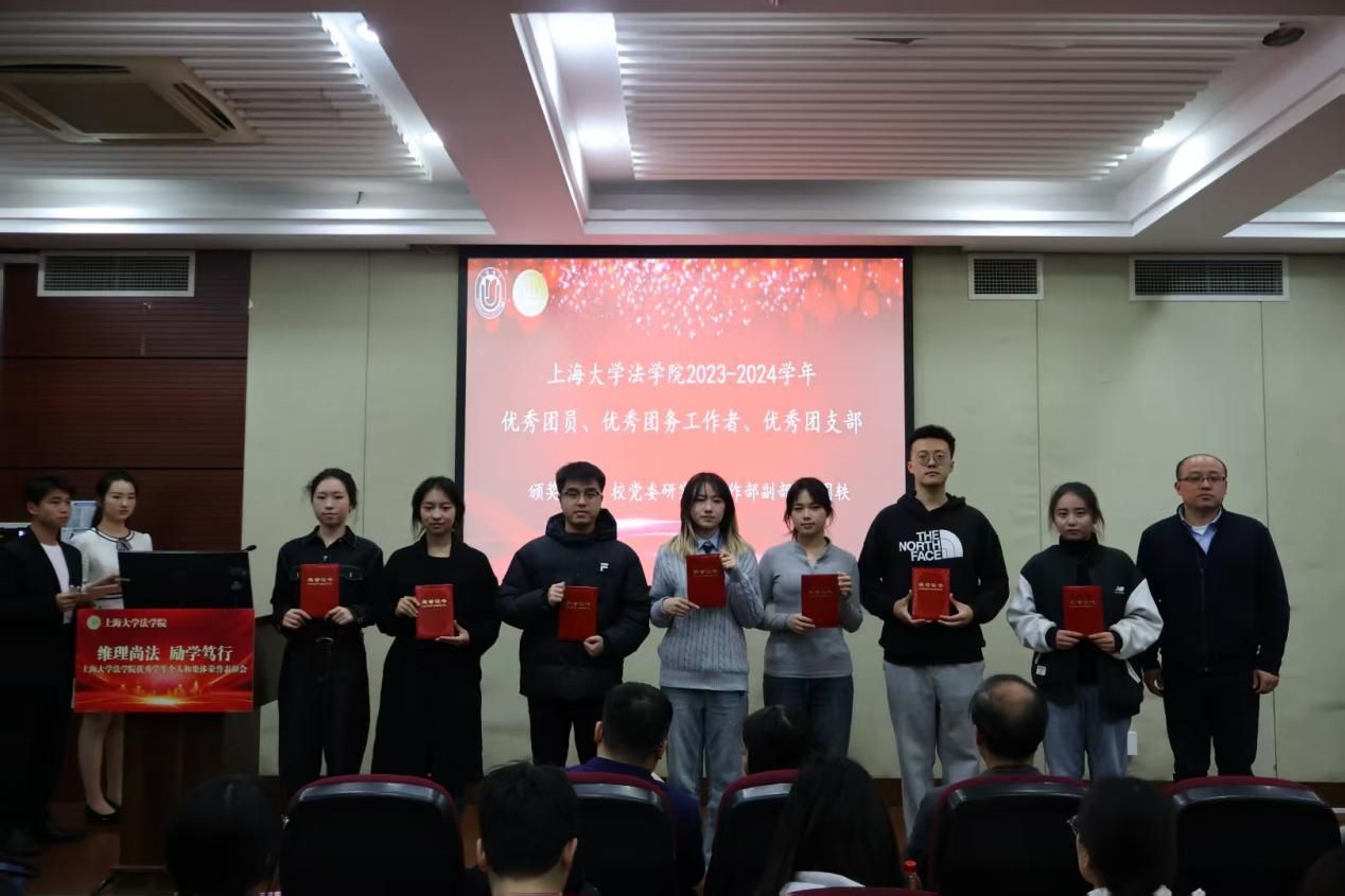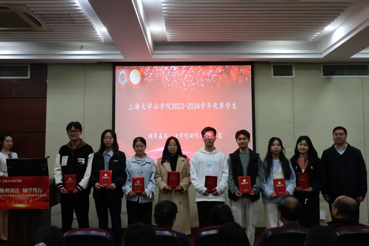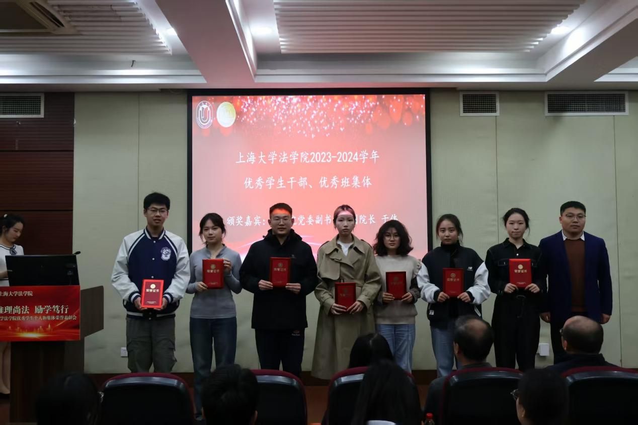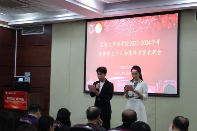 3月28日下午,法学院在宝山校区经管大楼115室举行2023-2024学年优秀学生个人和集体荣誉表彰大会。365完美体育学生工作办公室副主任韩晶、365完美体育党委研究生工作部副部长周轶,365完美体育法学院党委书记徐国明,法学院二级教授文学国,法学院党委副书记、副院长于伟,法学院副院长、知识产权学院院长袁真富以及学院各年级的辅导员老师、获奖学生以及各年级学生代表参加表彰大会。本次表彰大会由法学院研究生王睿思和本科生严嘉轩同学主持。