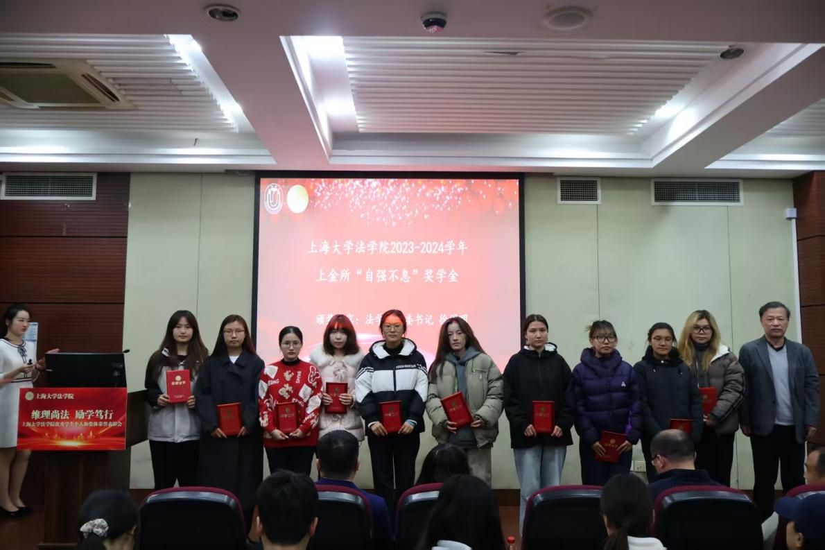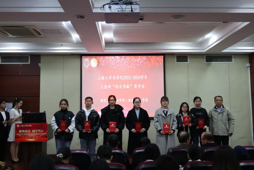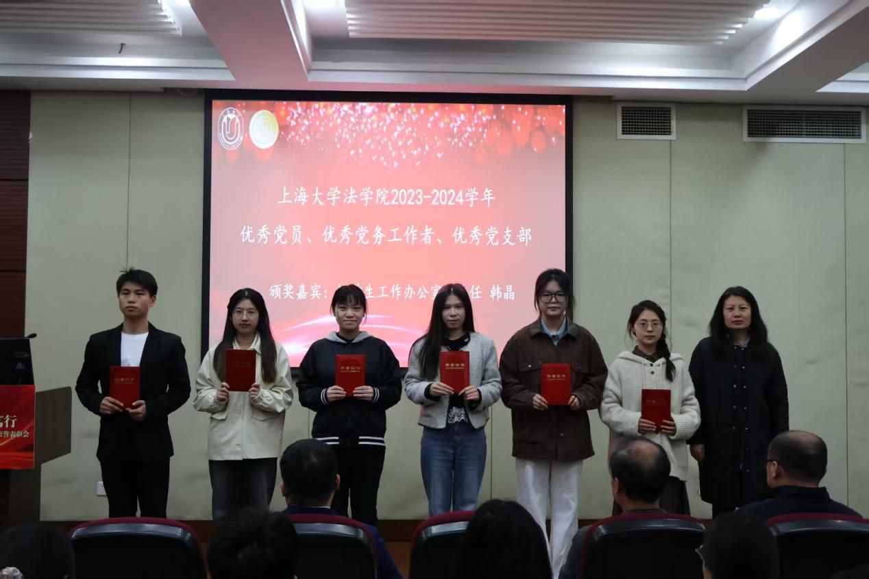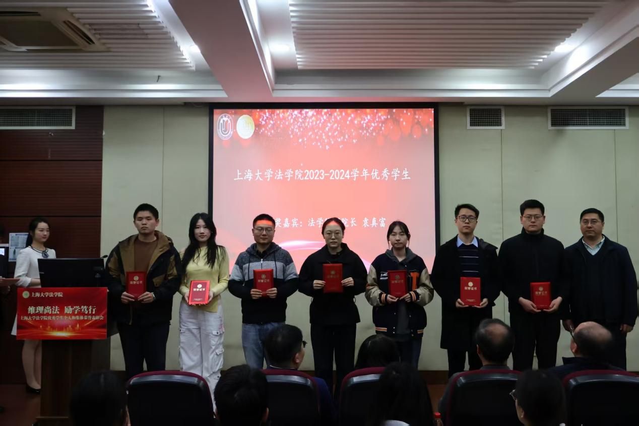 3月28日下午,法学院在宝山校区经管大楼115室举行2023-2024学年优秀学生个人和集体荣誉表彰大会。365完美体育学生工作办公室副主任韩晶、365完美体育党委研究生工作部副部长周轶,365完美体育法学院党委书记徐国明,法学院二级教授文学国,法学院党委副书记、副院长于伟,法学院副院长、知识产权学院院长袁真富以及学院各年级的辅导员老师、获奖学生以及各年级学生代表参加表彰大会。本次表彰大会由法学院研究生王睿思和本科生严嘉轩同学主持。